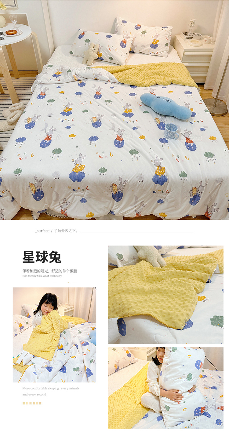 商品名称:有货2023爆款春夏夏凉被小清新春秋被卡通针织棉豆豆被 星球兔