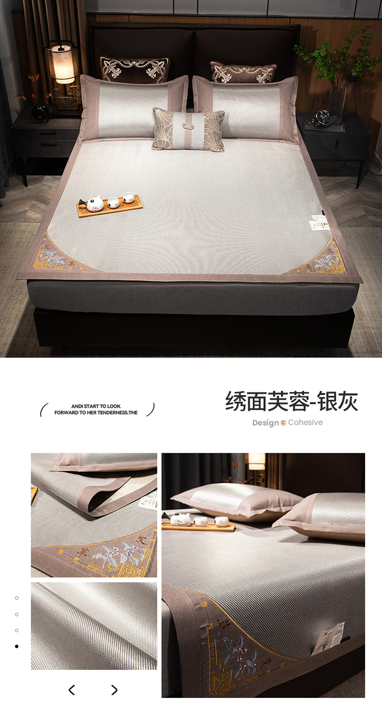 商品名称:席佬大2025新款艾草养生双面冰藤 绣面芙蓉+银灰