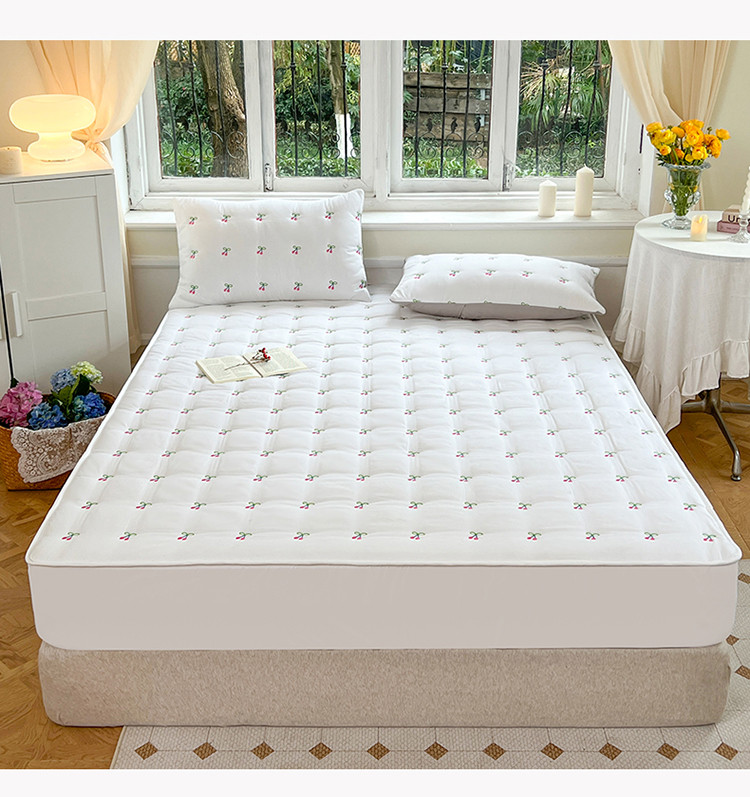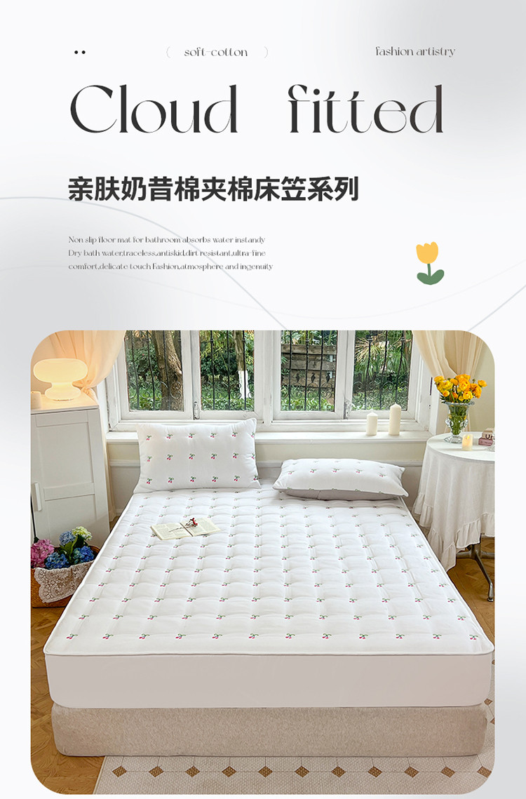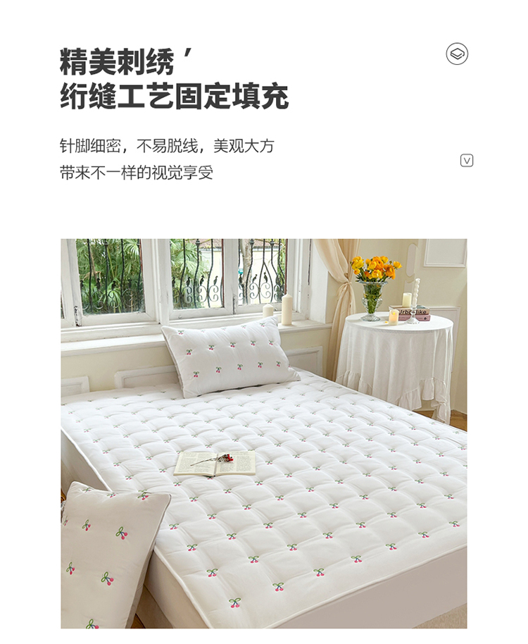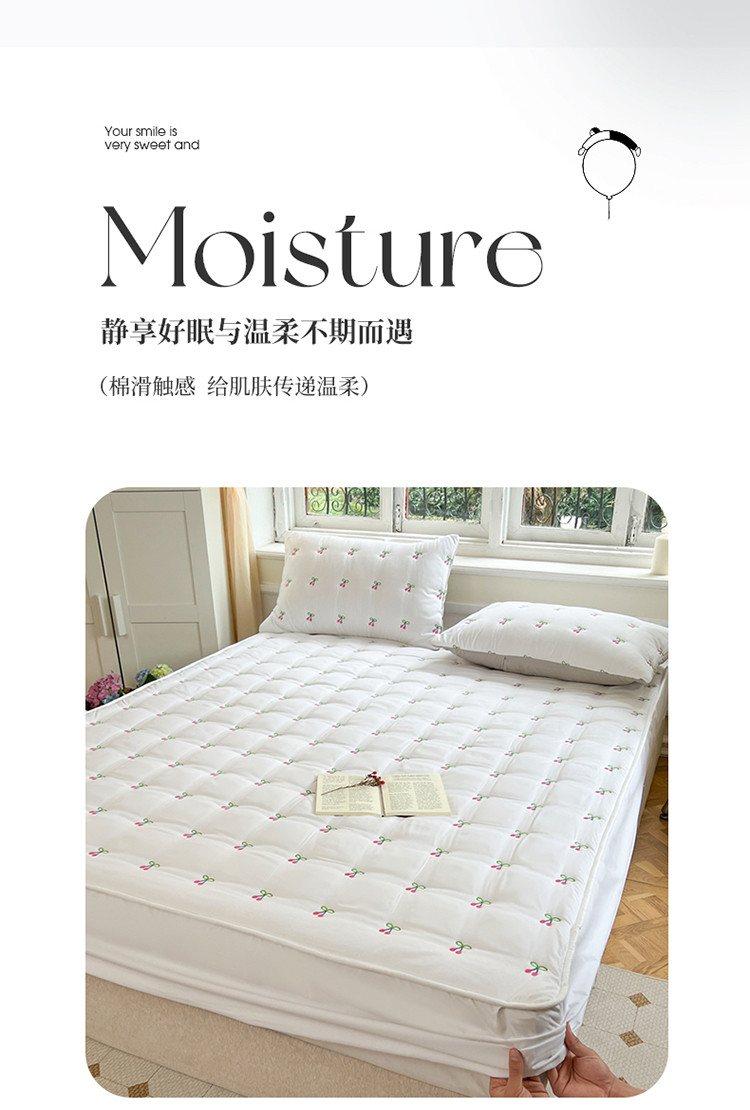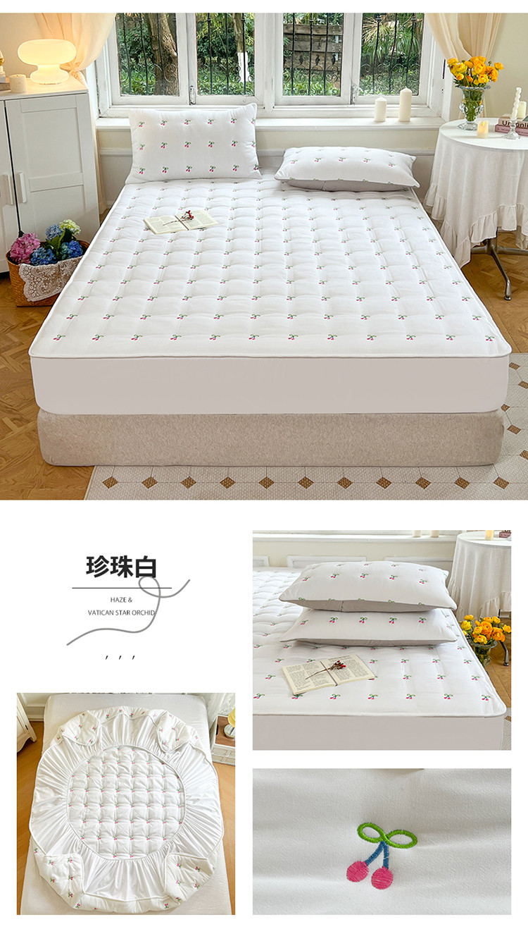 尊康家纺(原磊科) 2024亲肤奶昔棉夹棉床笠樱桃系列 樱桃-珍珠白