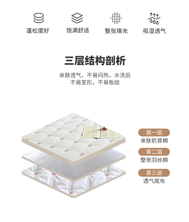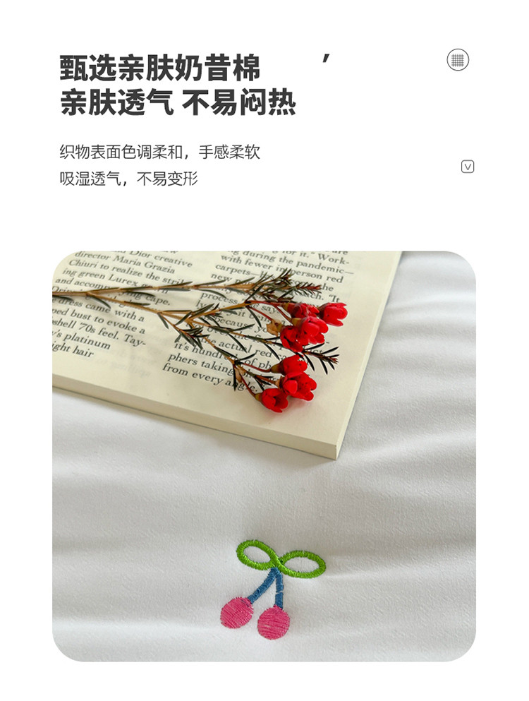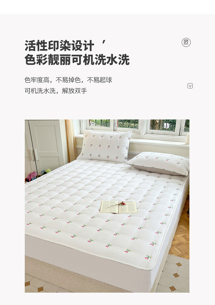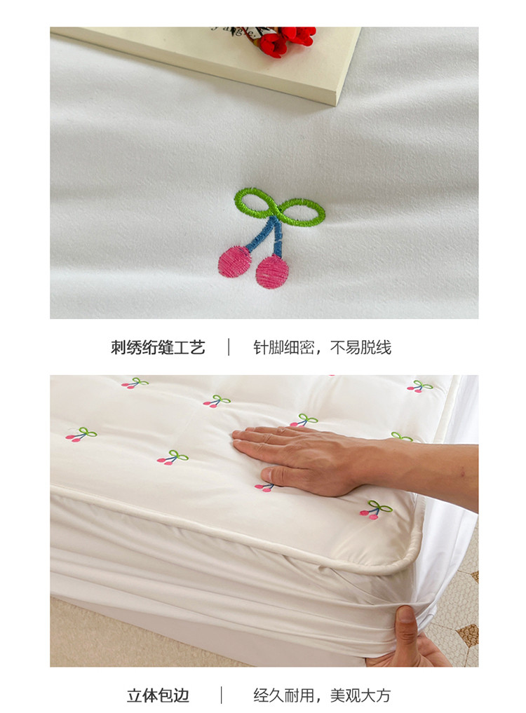 商品名称:尊康家纺(原磊科) 2024亲肤奶昔棉夹棉床笠樱桃系列 樱桃-珍珠白