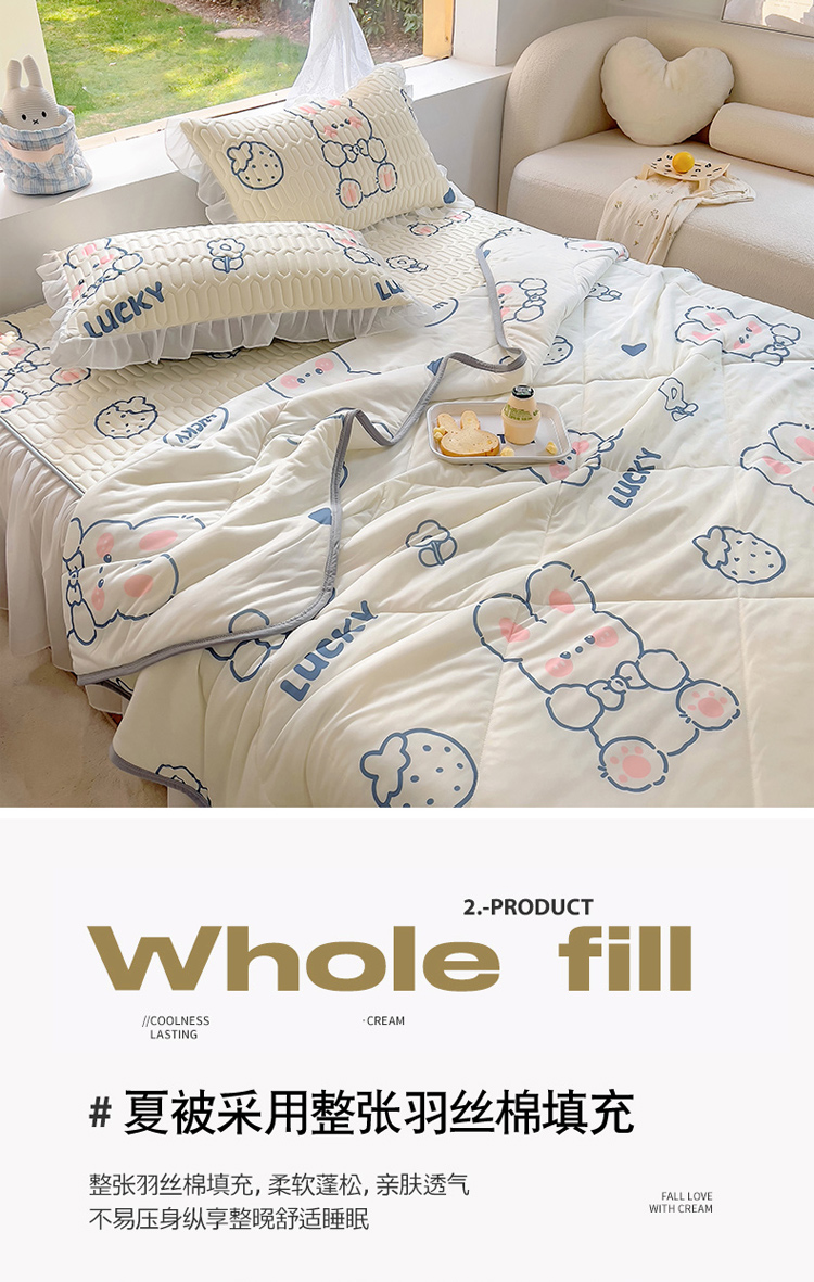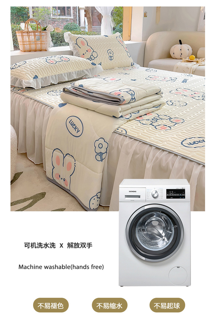 商品名称:柒月家居2023新款乳胶床裙款凉席和夏被 夏被-萌兔兔