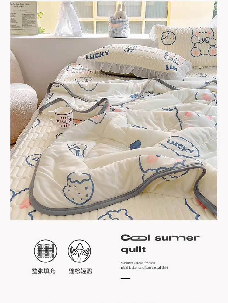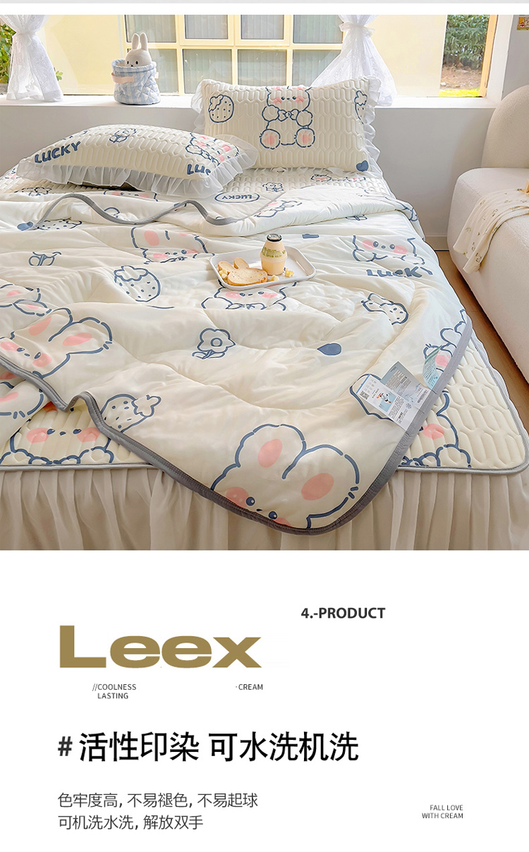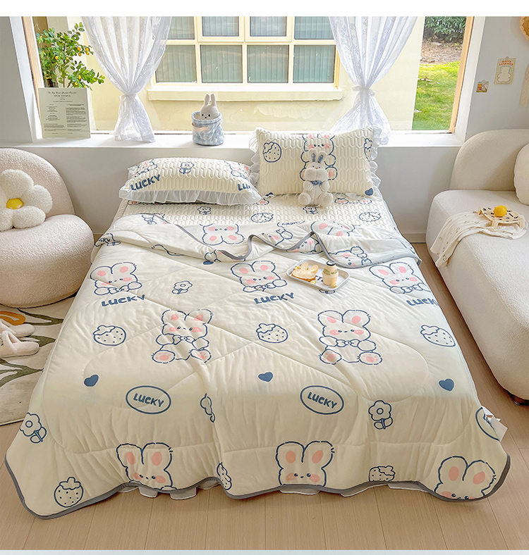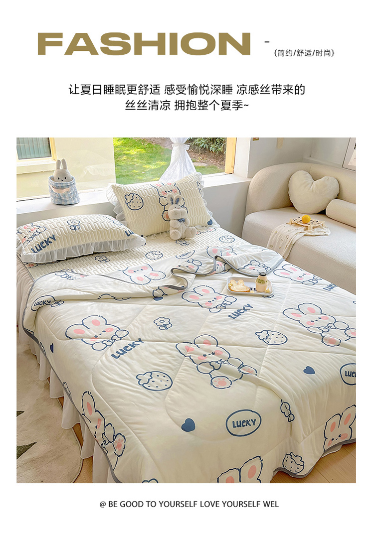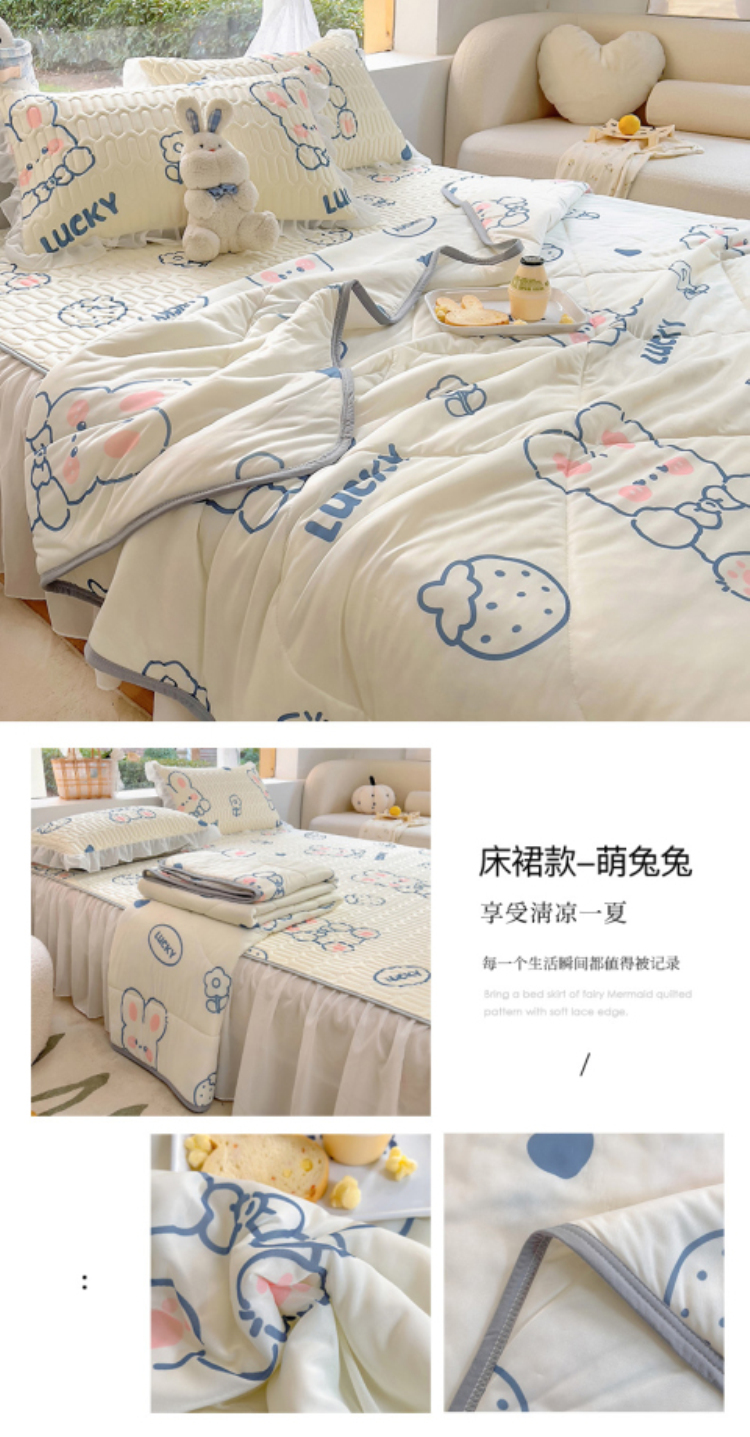 柒月家居2023新款乳胶床裙款凉席和夏被 夏被-萌兔兔