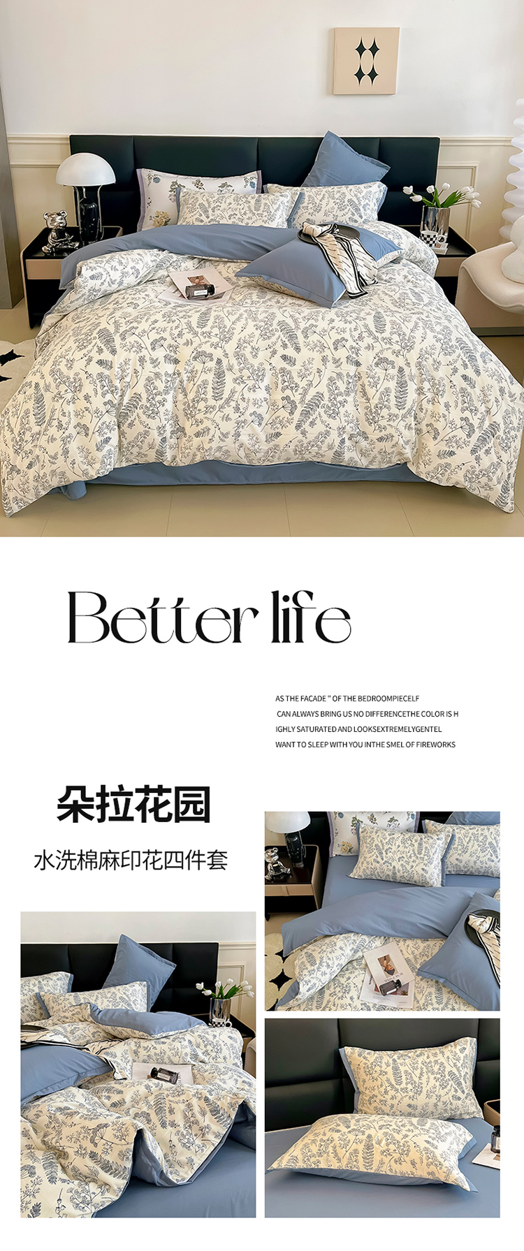 当前位置: 91家纺网 > 商品网购 > 床品套件 > 四件套 > 水洗棉四件套 > 梵克保罗 2024春夏新品水洗棉麻双层纱四件套 朵拉花园