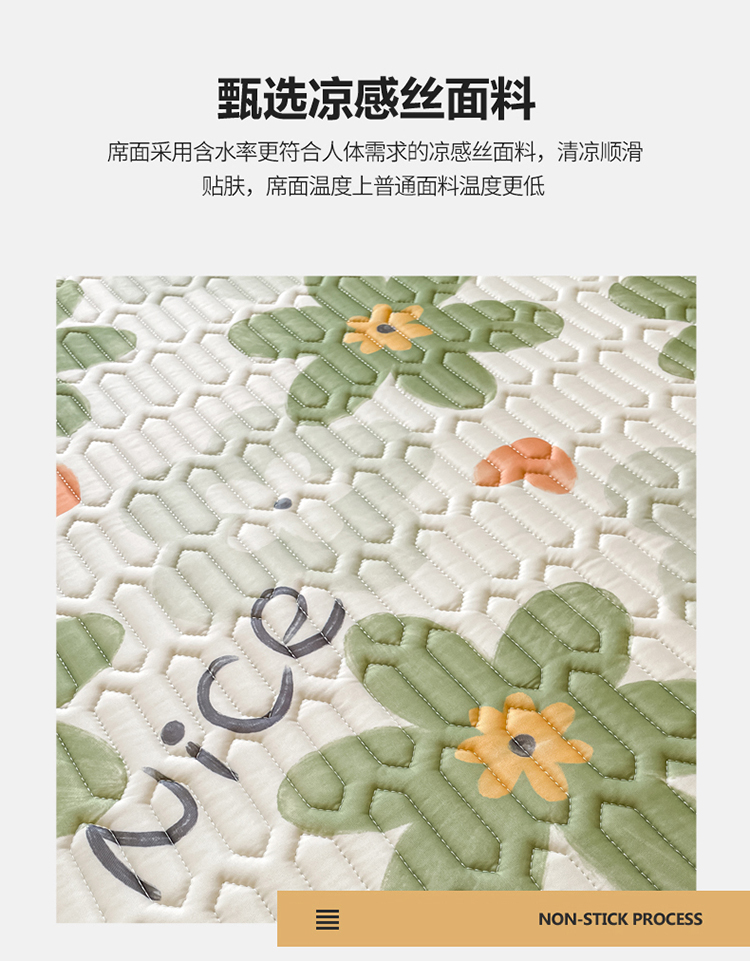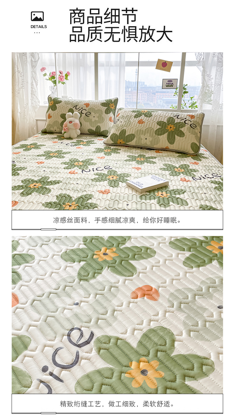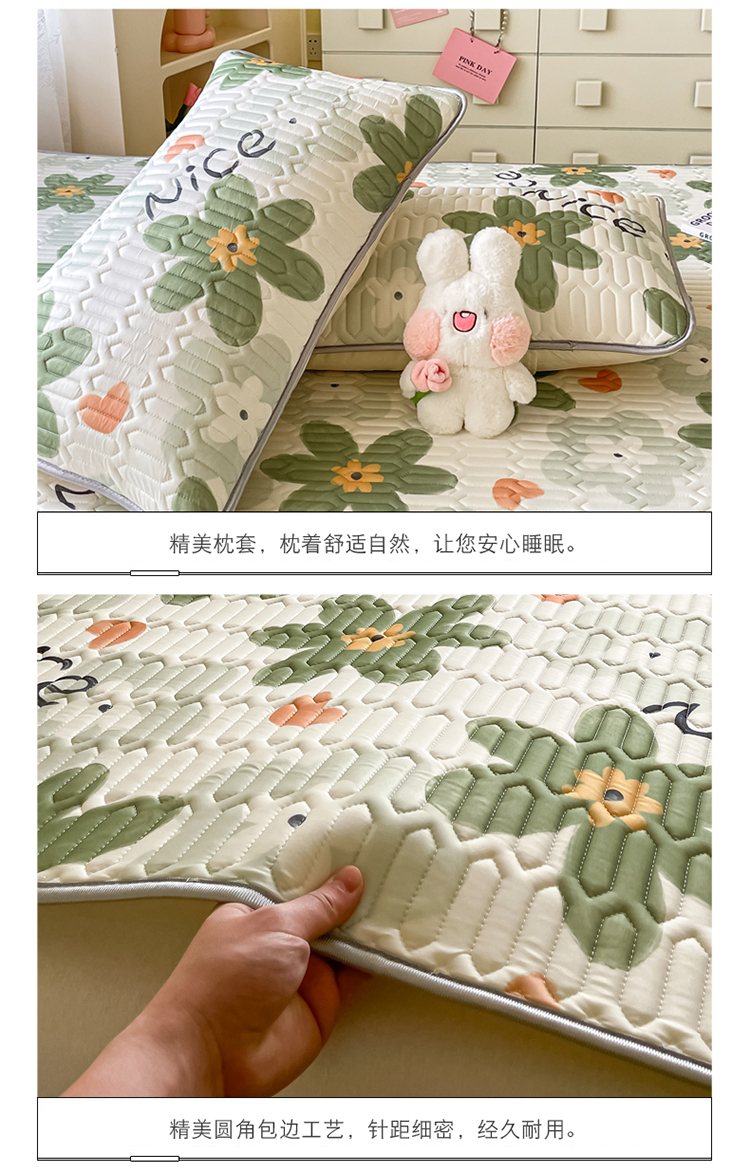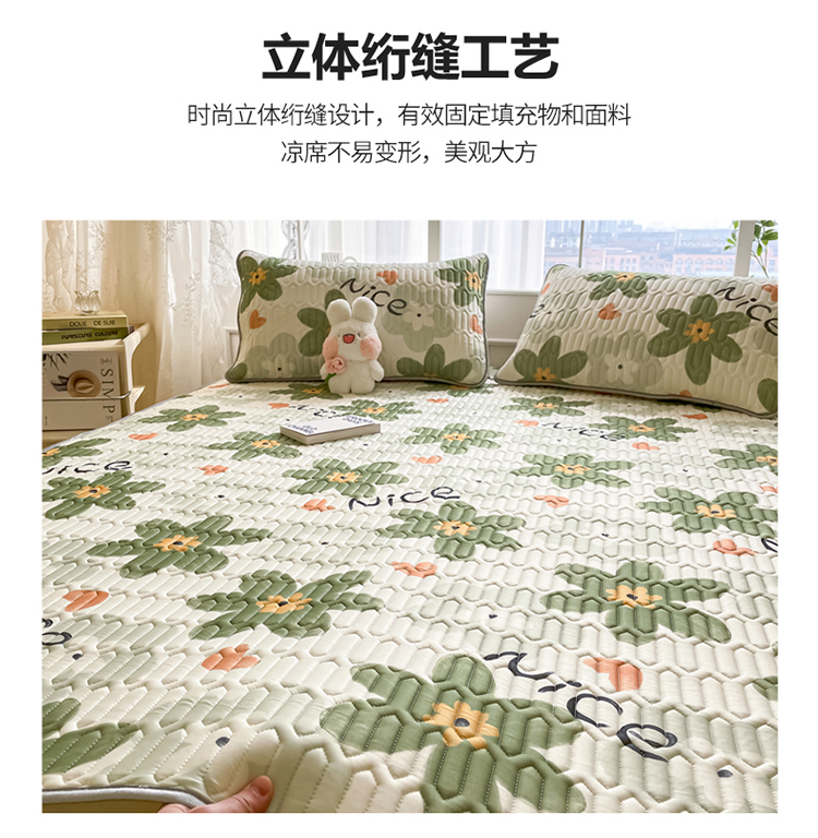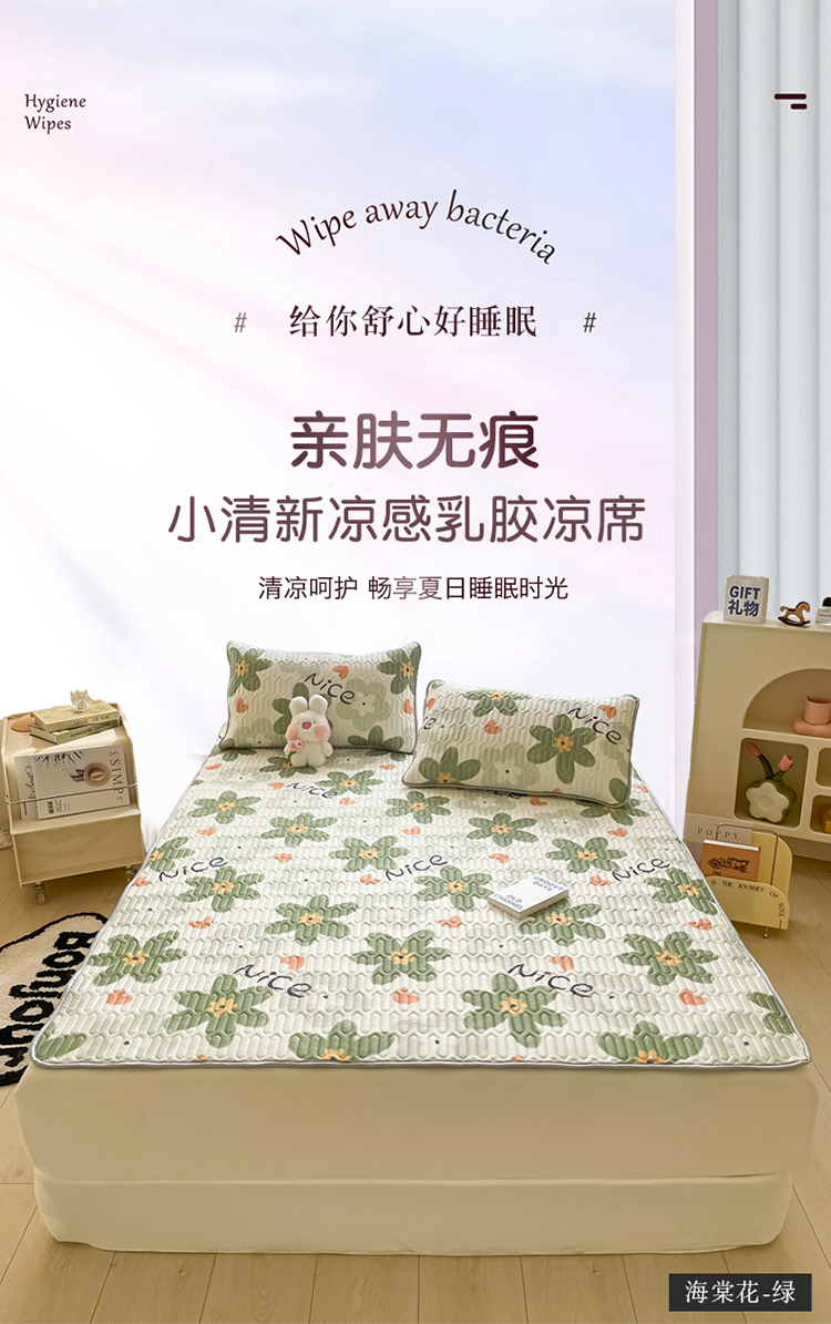 商品名称:金爱家 2023新款小清新凉感丝乳胶凉席三件套 海棠花-绿