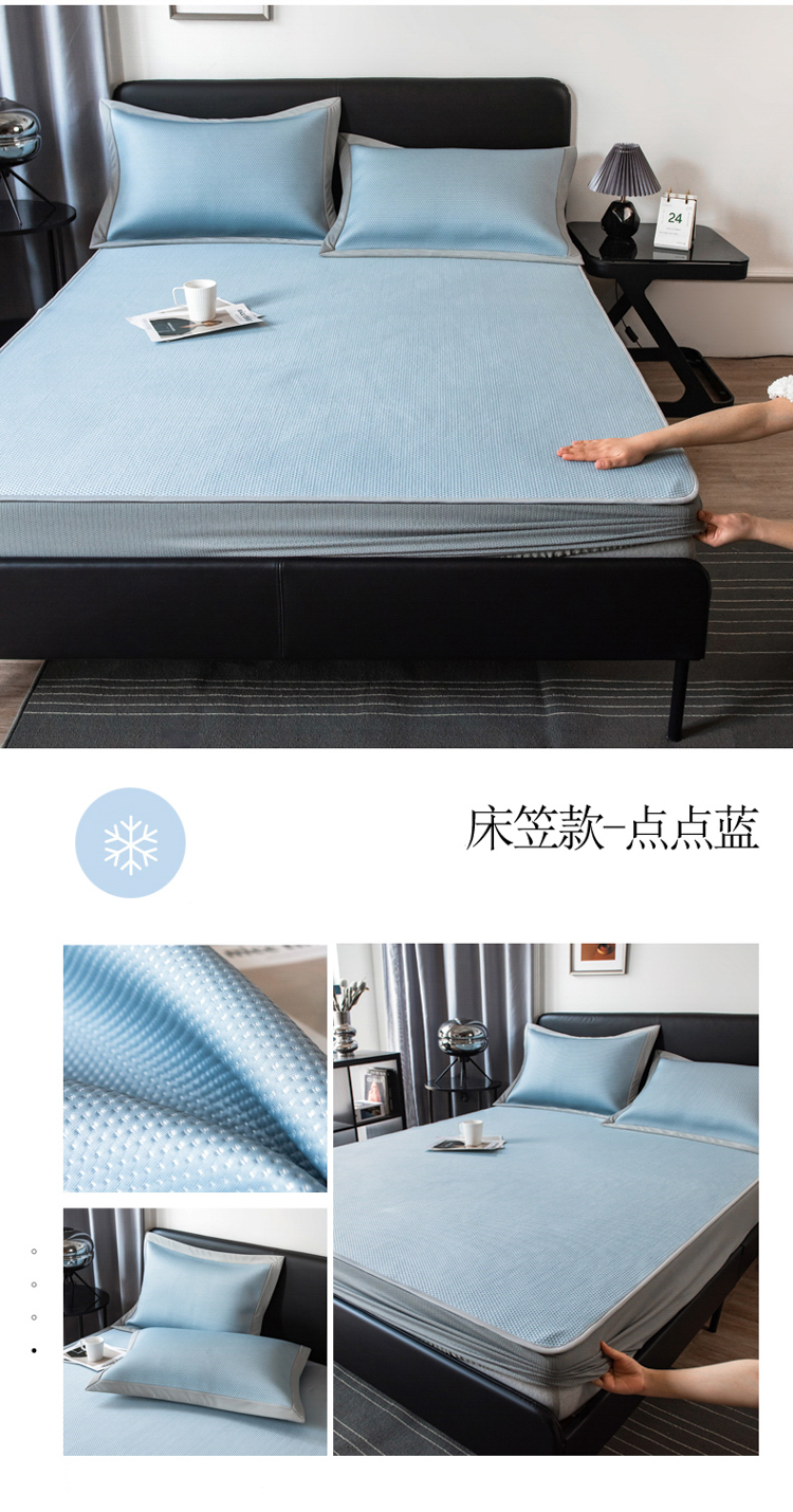 商品名称:鑫帝 凉感丝软凉席三件套--点点席 网布床笠点点 蓝