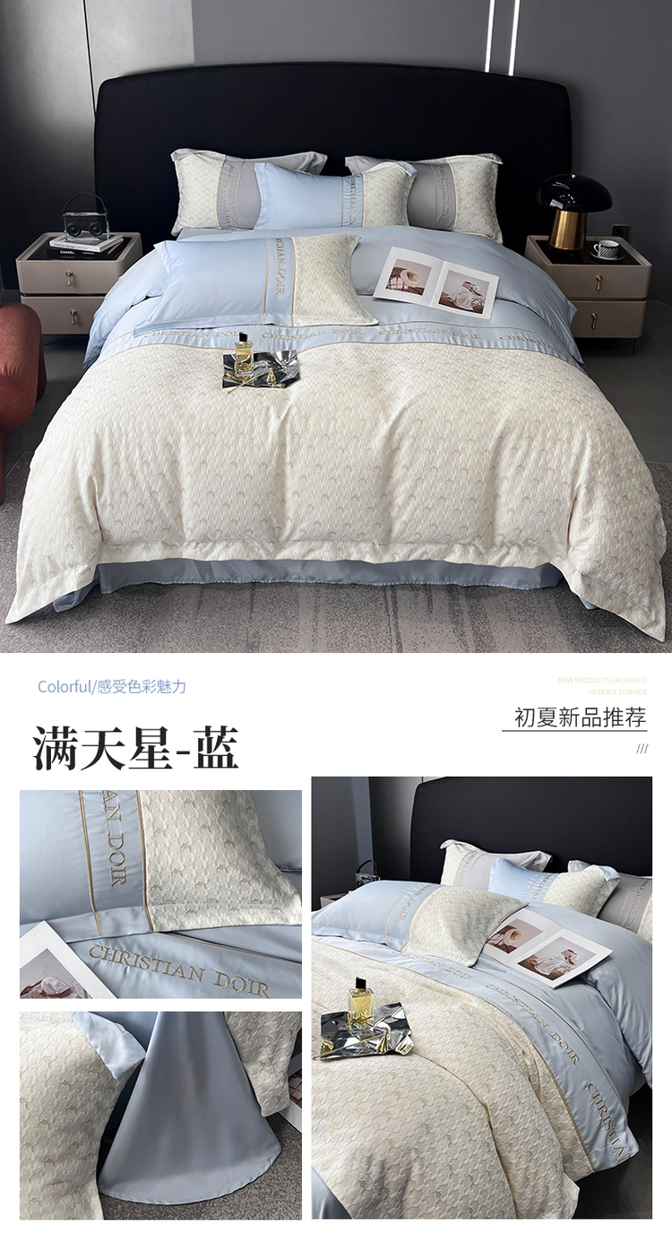 优悦 2023新款刺绣款冰丝四件套-满天星 满天星-蓝