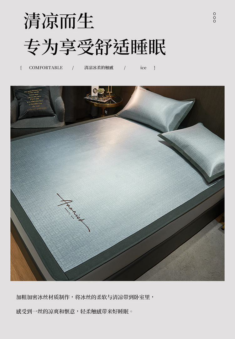 (总)全季家居 2023新款纯色凉感丝刺绣凉席,天蓝,灰色,粉色,绿色,草绿