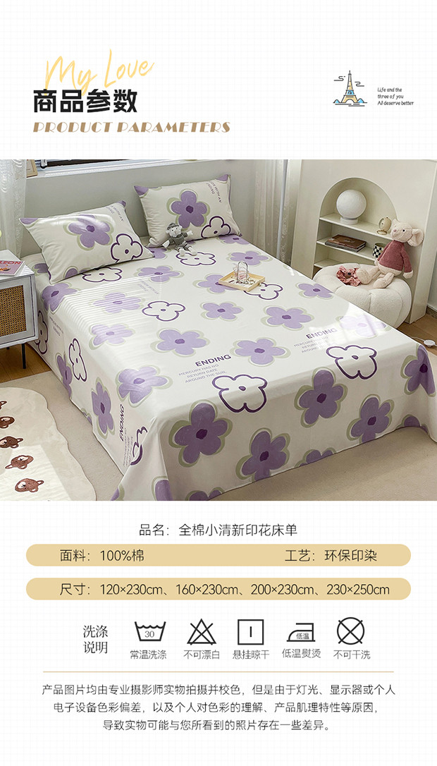 商品名称:绵庭 2023新款 全棉印花床单 花仑