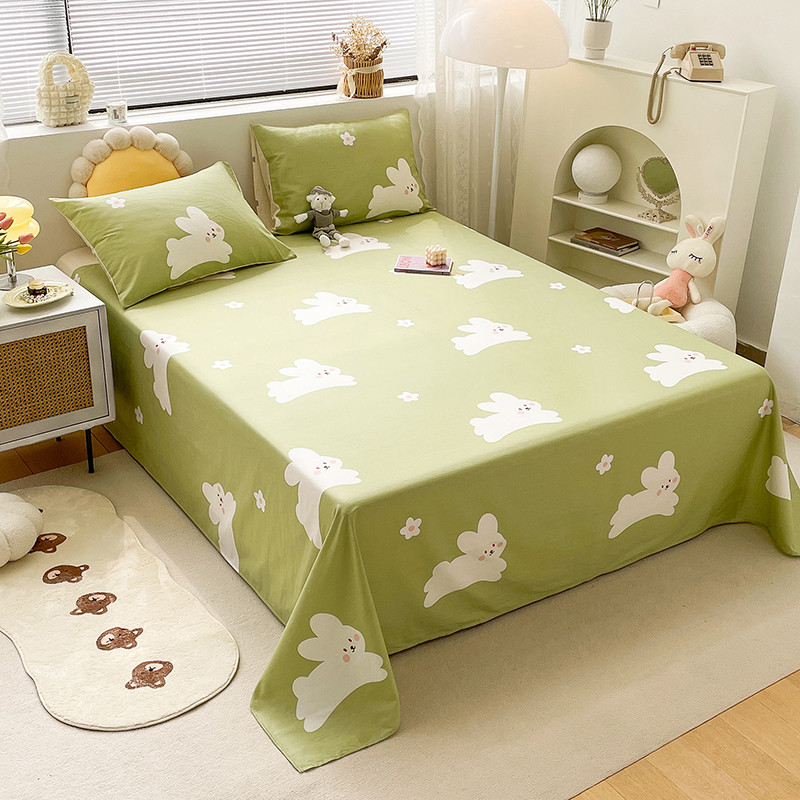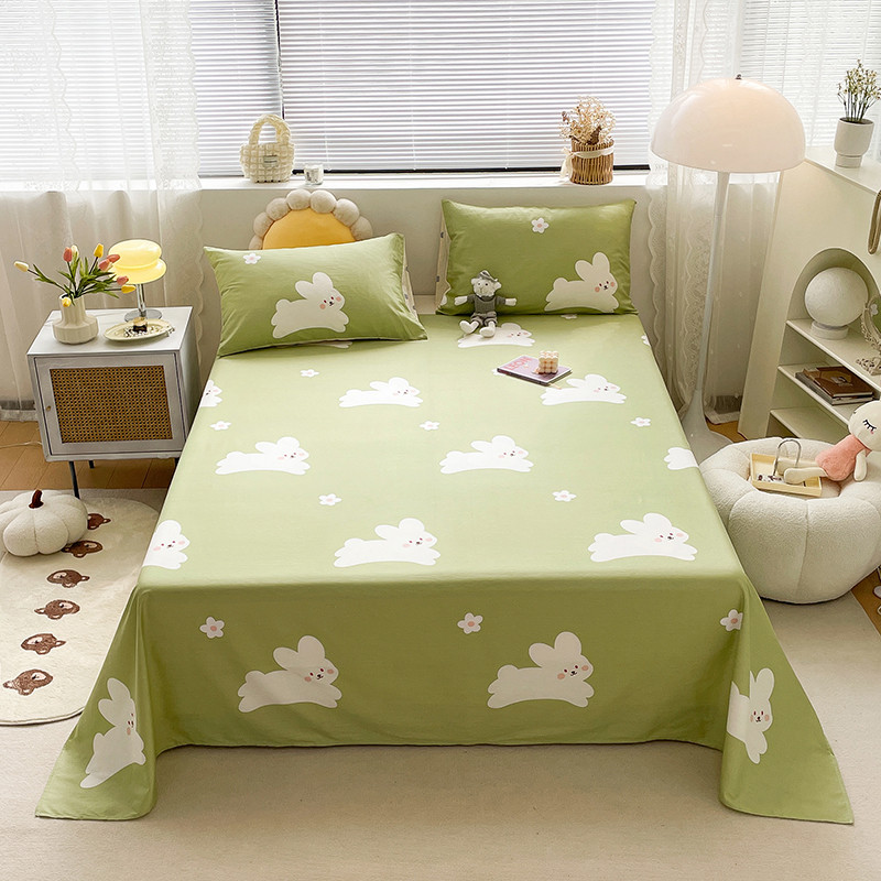 绵庭 2023新款 全棉印花床单 萌萌兔 绿