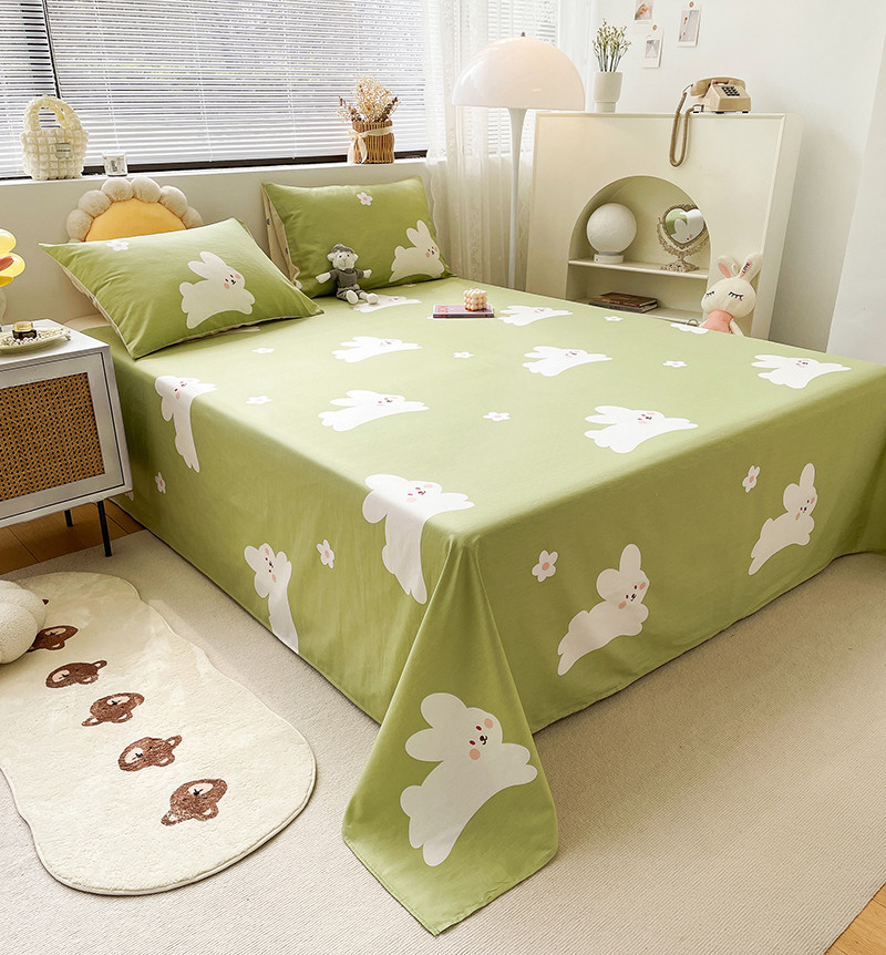商品名称:绵庭 2023新款 全棉印花床单 萌萌兔 绿