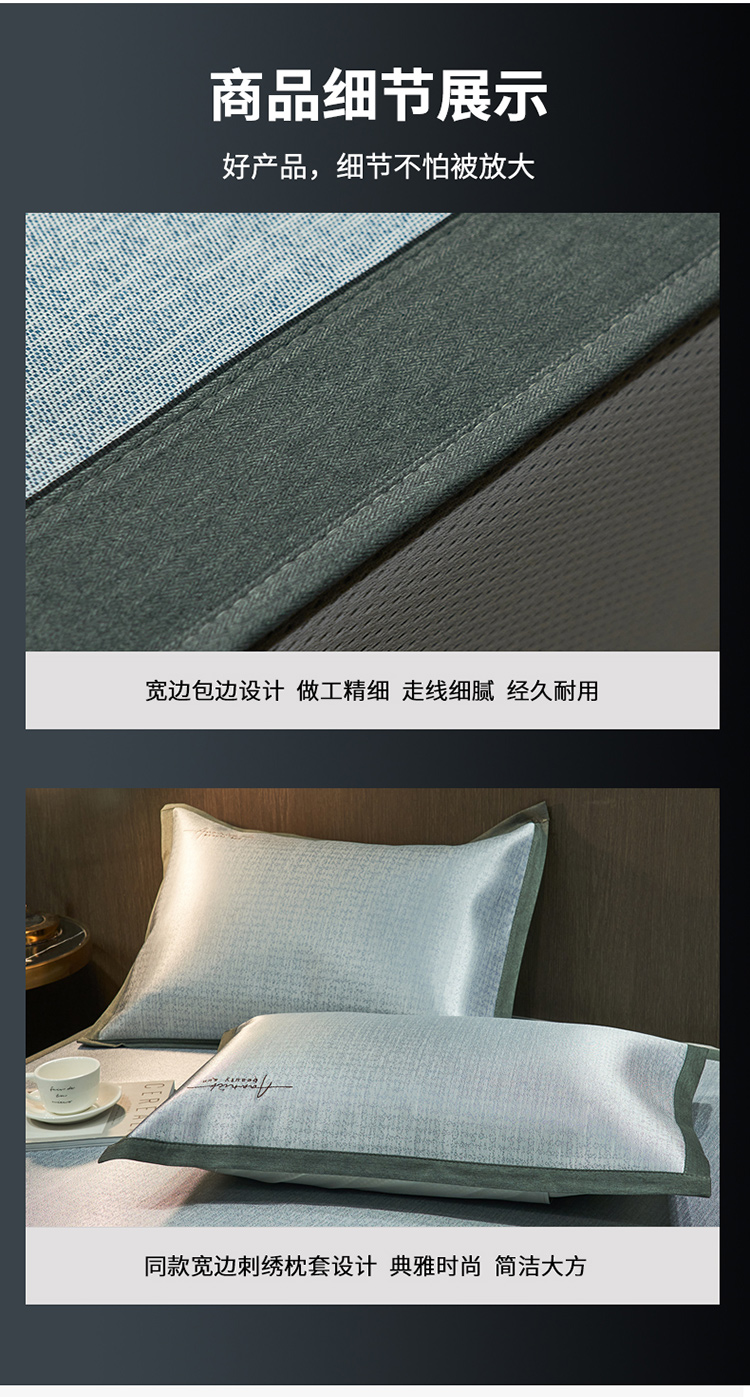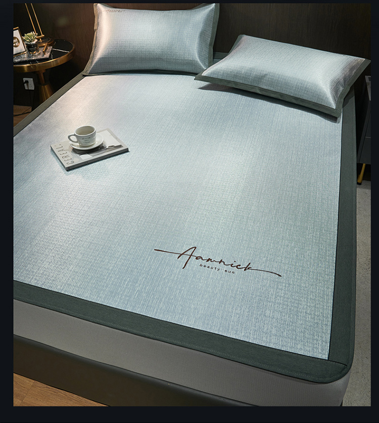 (总)全季家居 2023新款纯色凉感丝刺绣凉席,天蓝,灰色,粉色,绿色,草绿