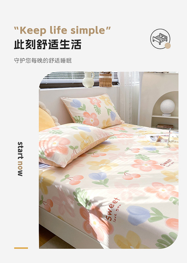 商品名称:绵庭 2023新款 全棉印花床笠 花蜜悠然