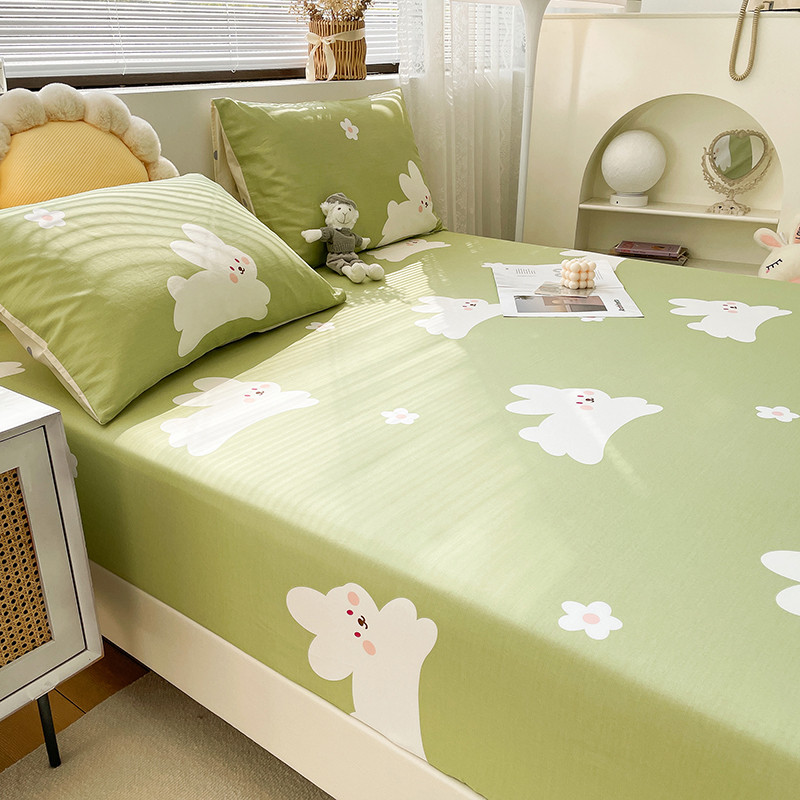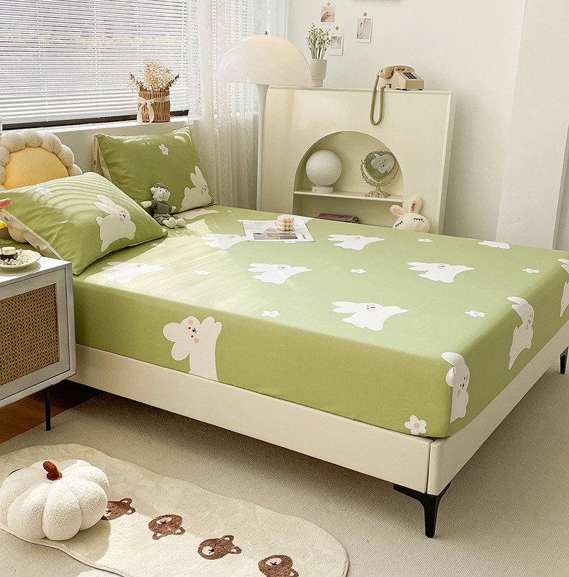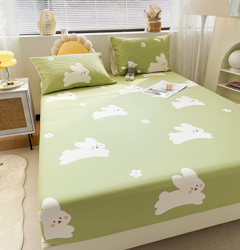 绵庭 2023新款 全棉印花床笠 萌萌兔 绿