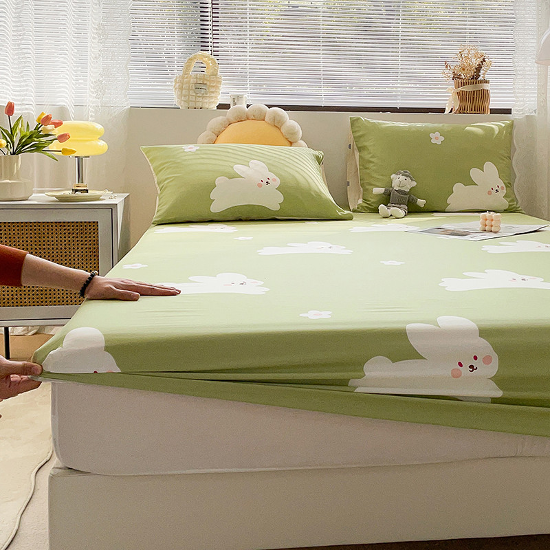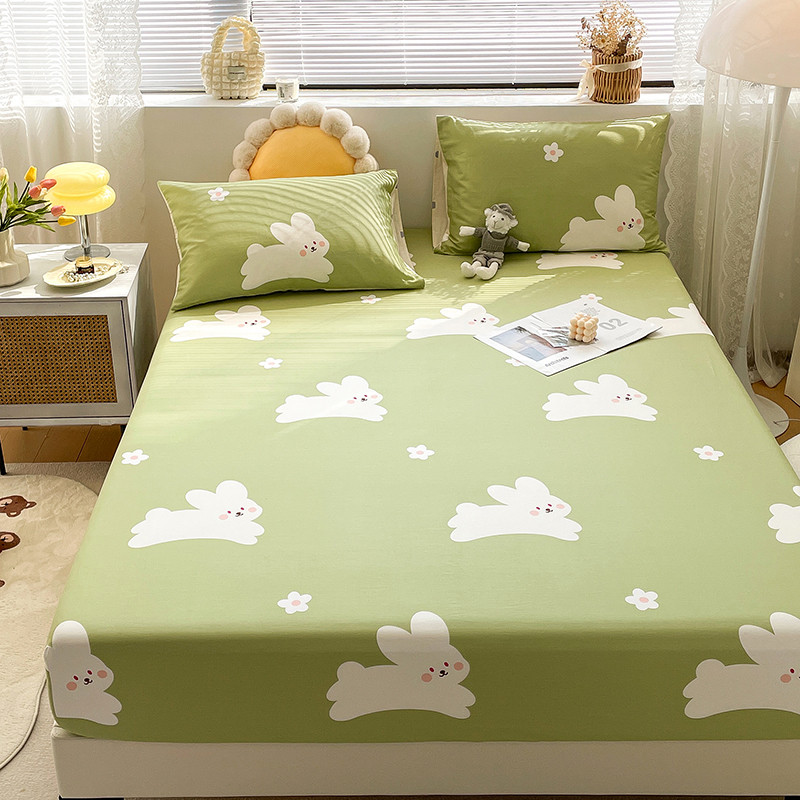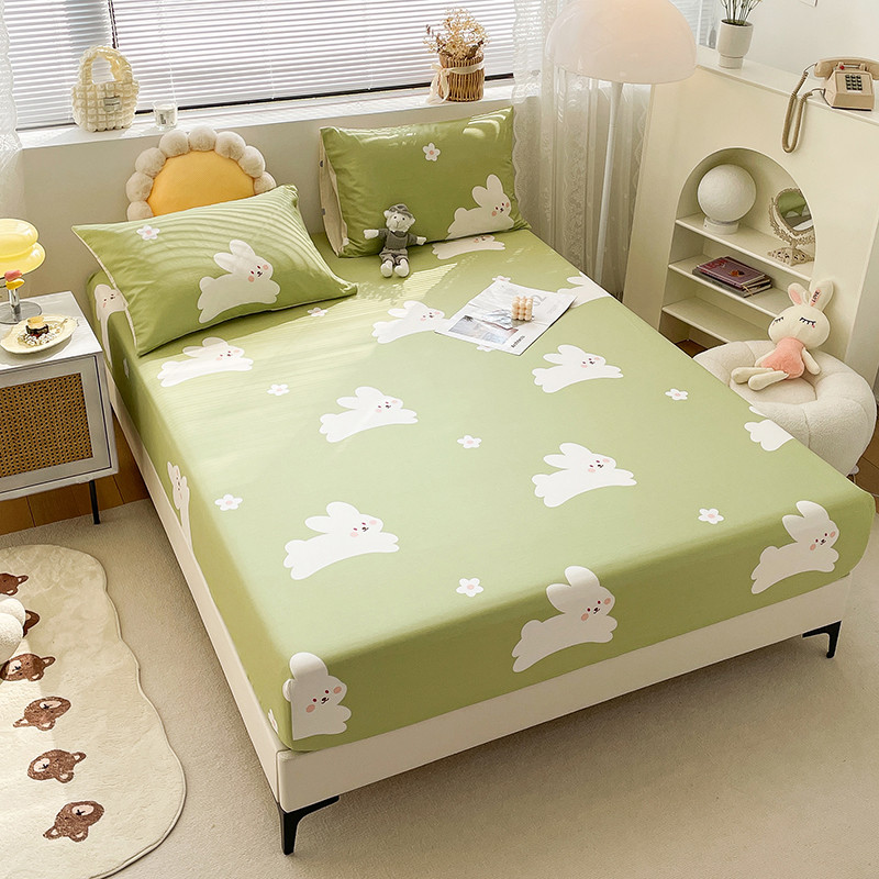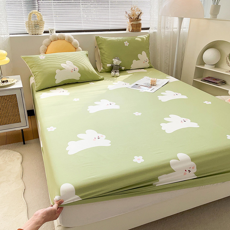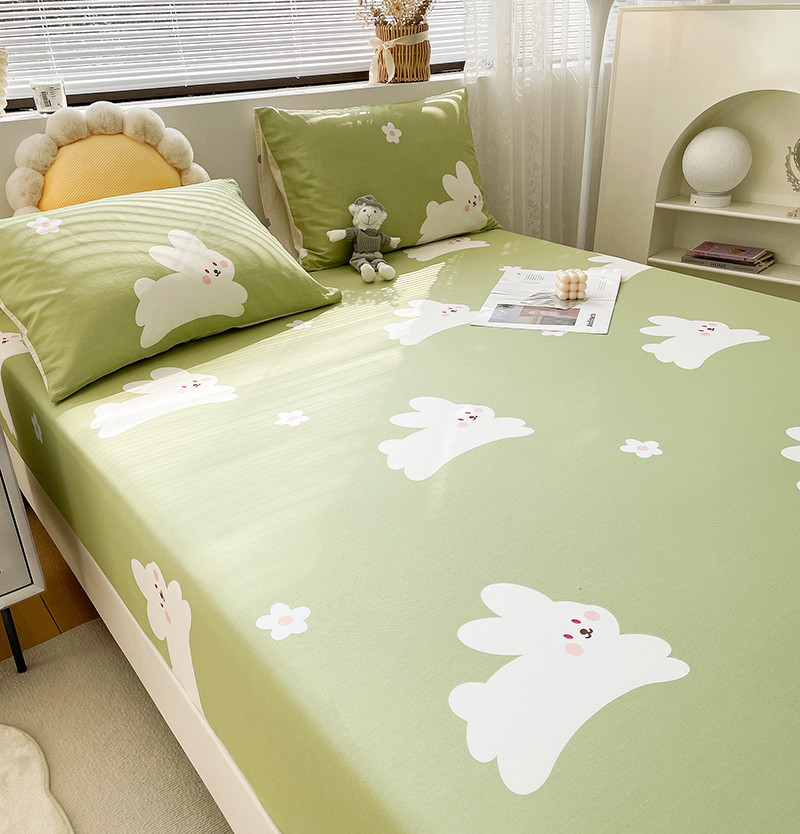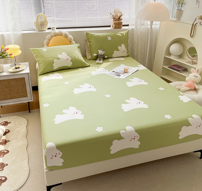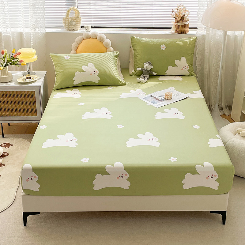商品名称:绵庭 2023新款 全棉印花床笠 萌萌兔 绿