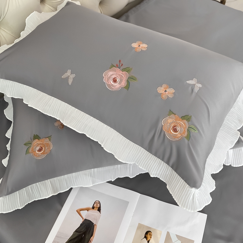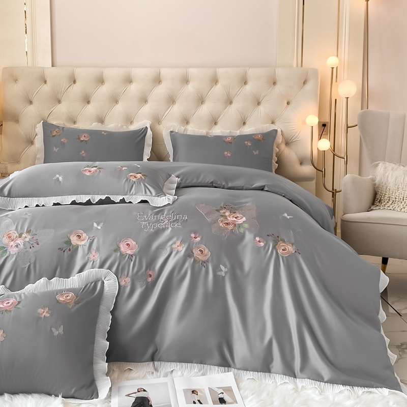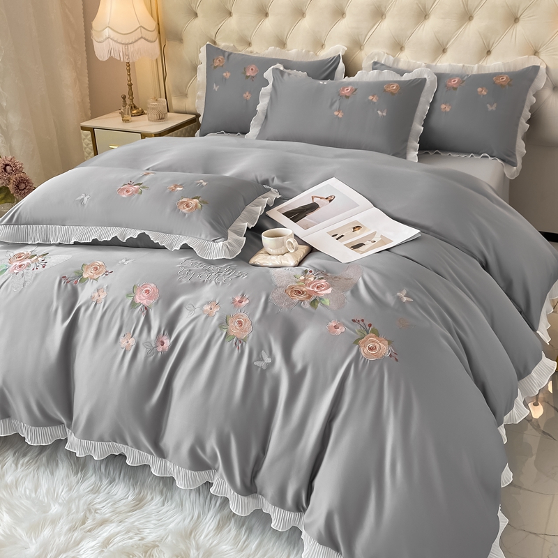 商品名称:伊人居 2023新款韩版刺绣四件套花梦溪柔系列 高级灰