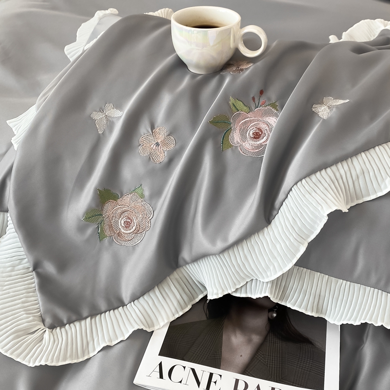 伊人居 2023新款韩版刺绣四件套花梦溪柔系列 高级灰