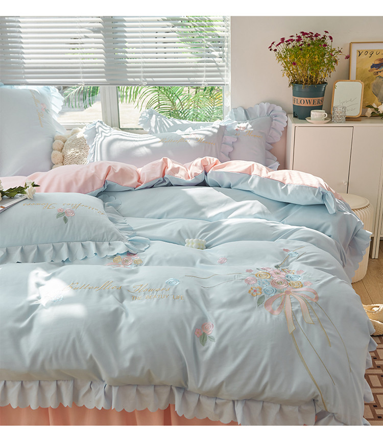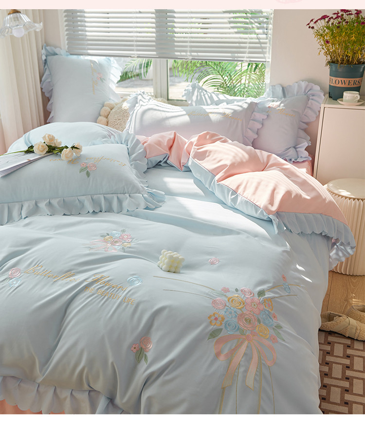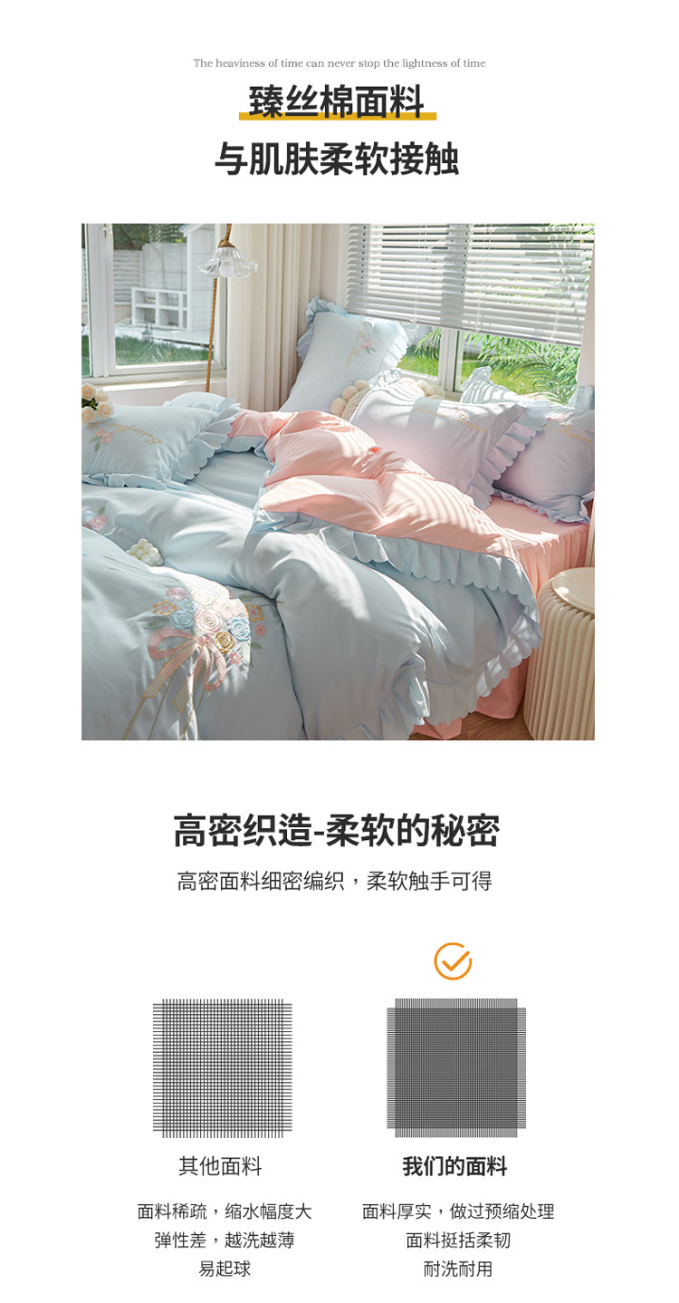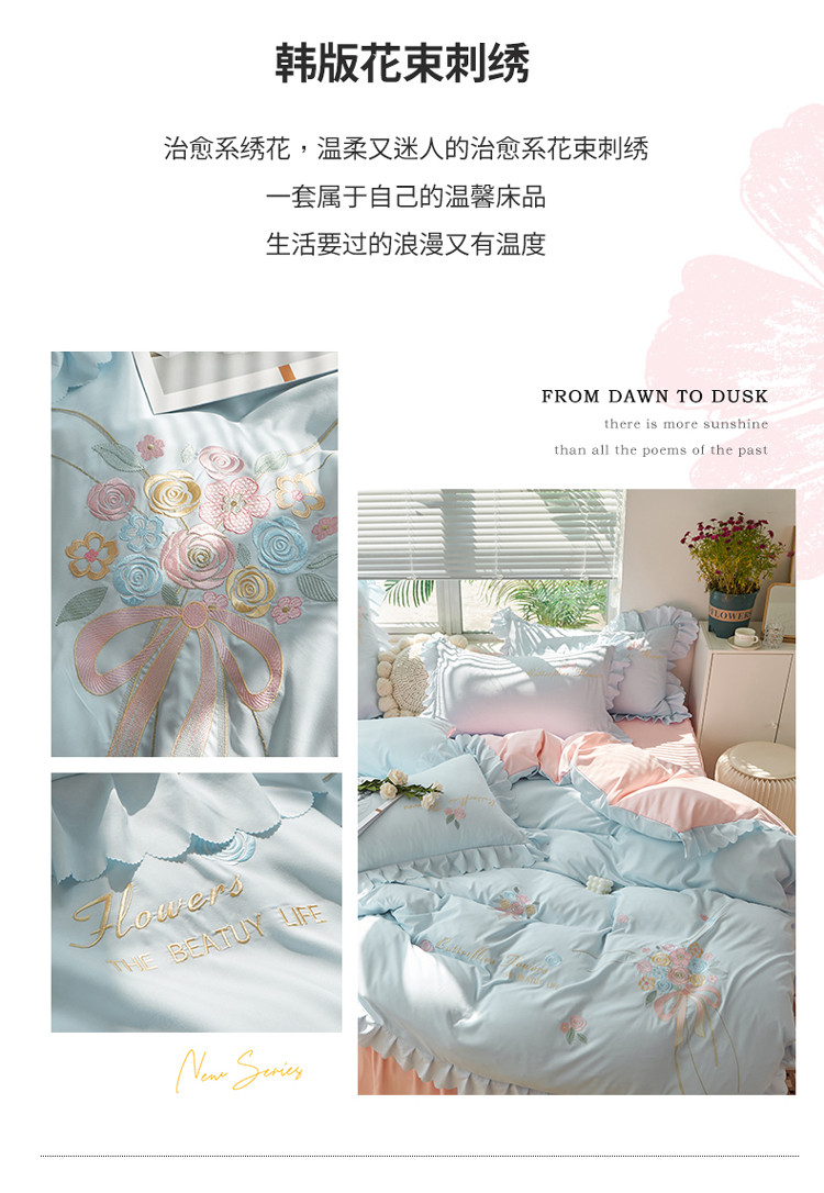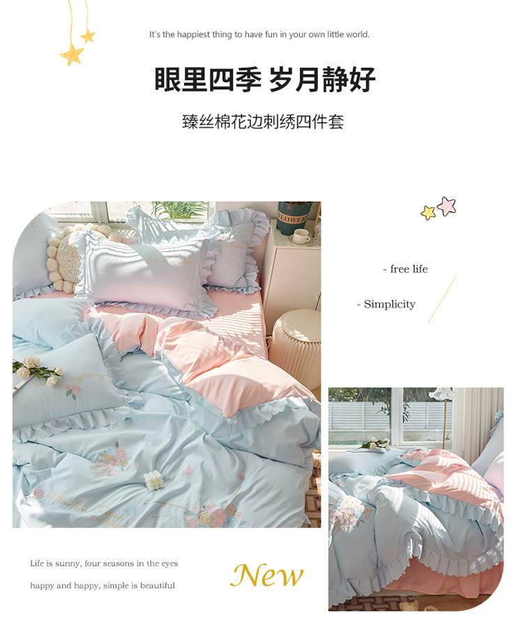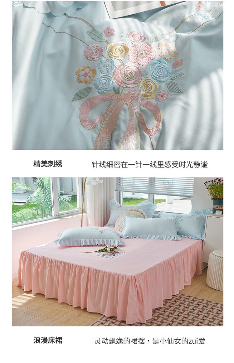 当前位置: 91家纺网 > 商品网购 > 床品套件 > 四件套 > 磨毛活性四件套 > 包小包2024春夏直播新款韩版花熙系列臻丝棉四件套花熙天空蓝提供买家秀