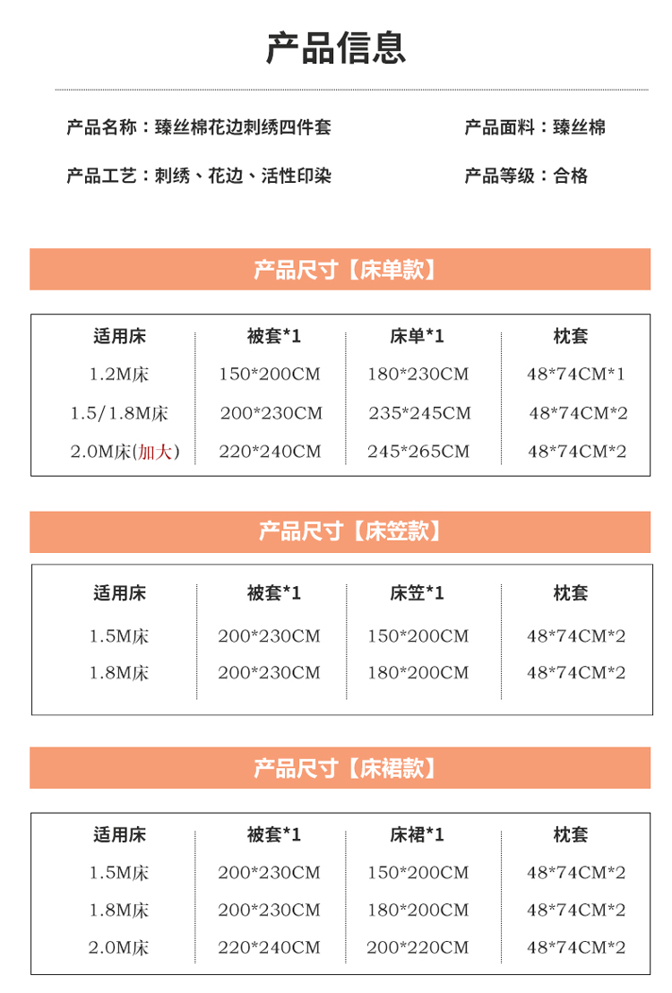 2.0m床裙款四件套(被套220*240) | ¥98.00 |