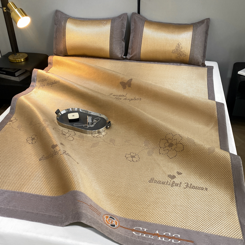 商品名称:伊被源 2023新款凉感冰藤席-沁雅、字母、蝶恋花 蝶恋花-金
