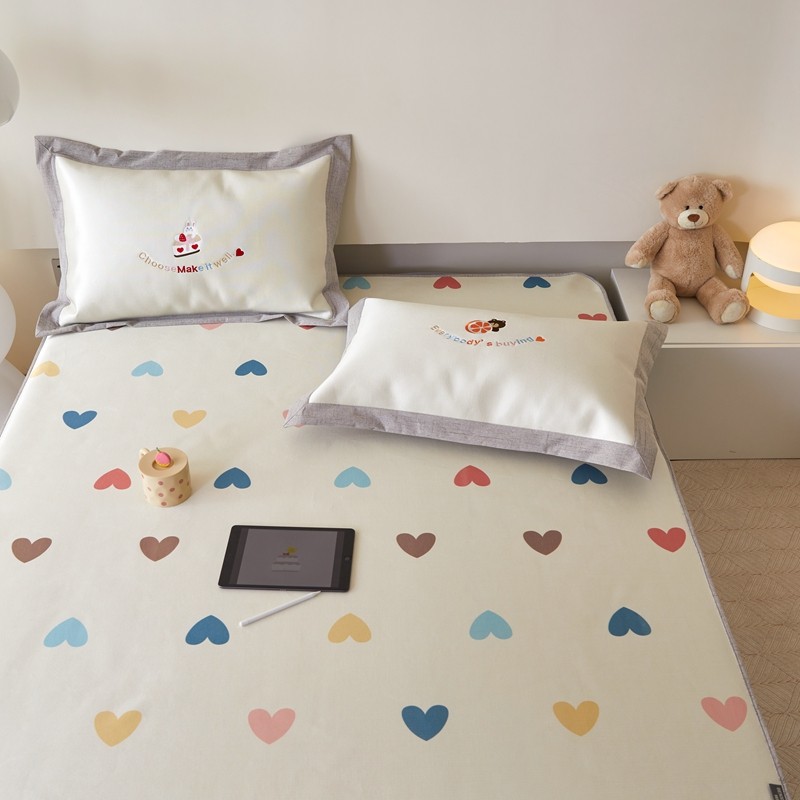 (总)木希2025春夏新款可水洗冰丝席幻彩刺绣床笠系列-场景一,爱心刺绣,格调爱心,脚丫刺绣,森林小熊,小怪兽,小秋秋乐园,熊猫乐园