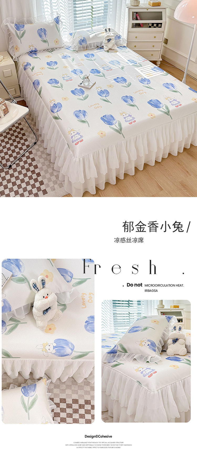 商品名称:花漾 2023直播爆款轻奢风满天星冰豆豆席子凉席床裙款 郁金香小兔