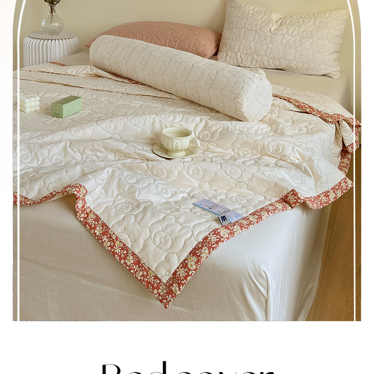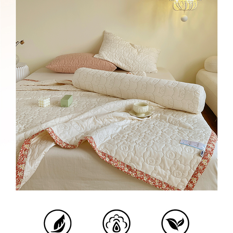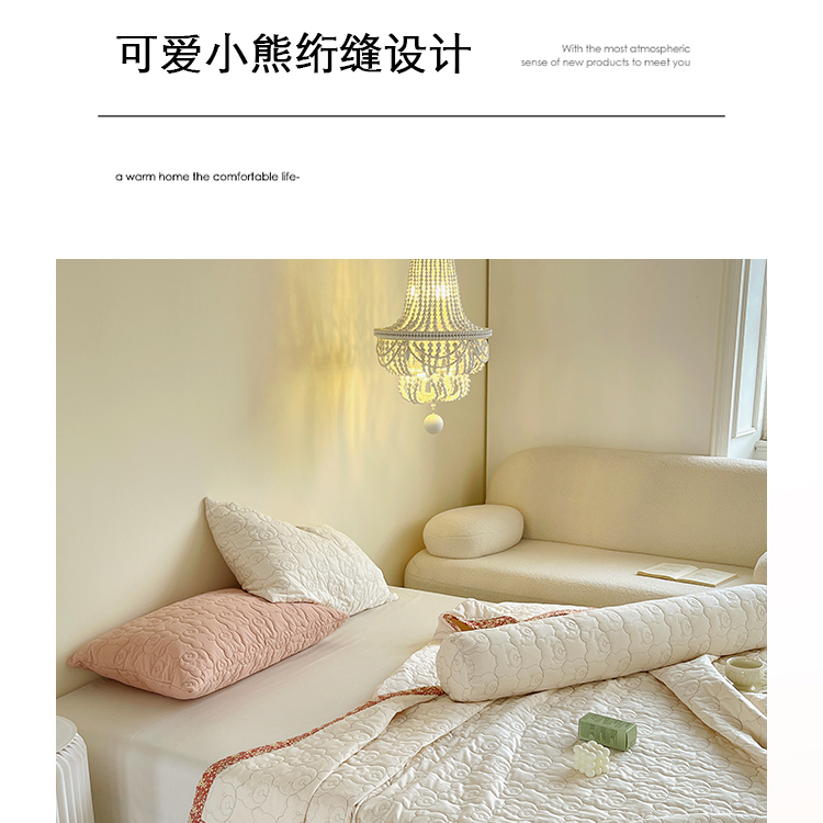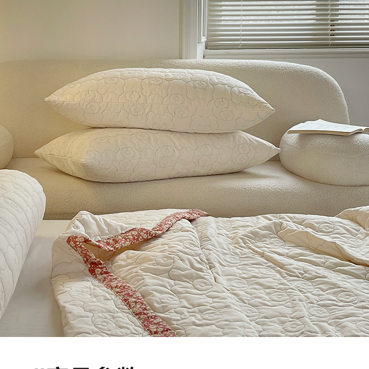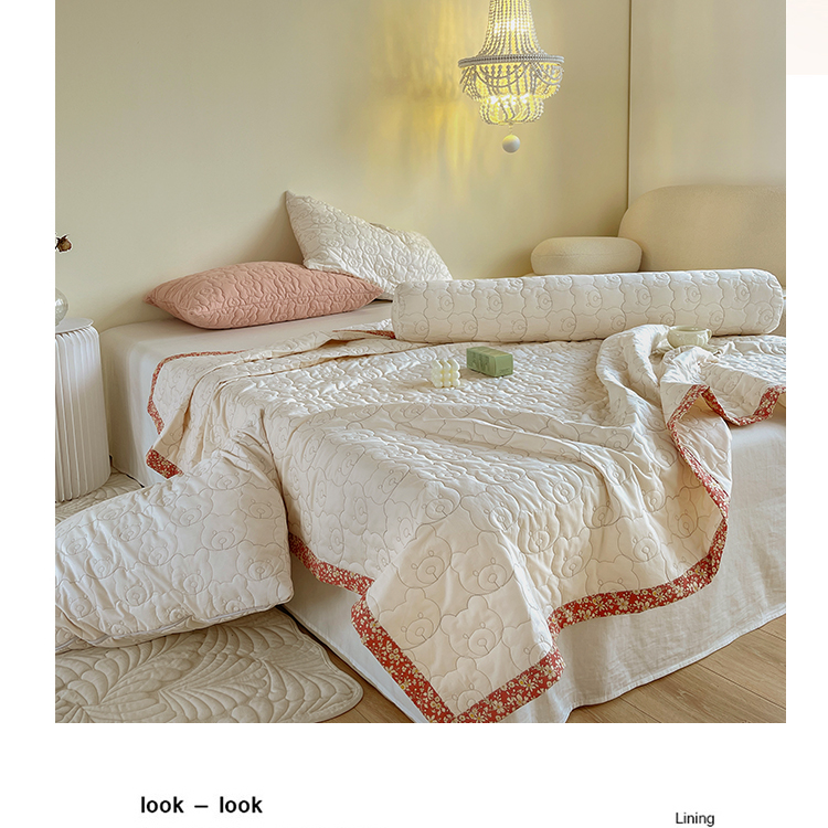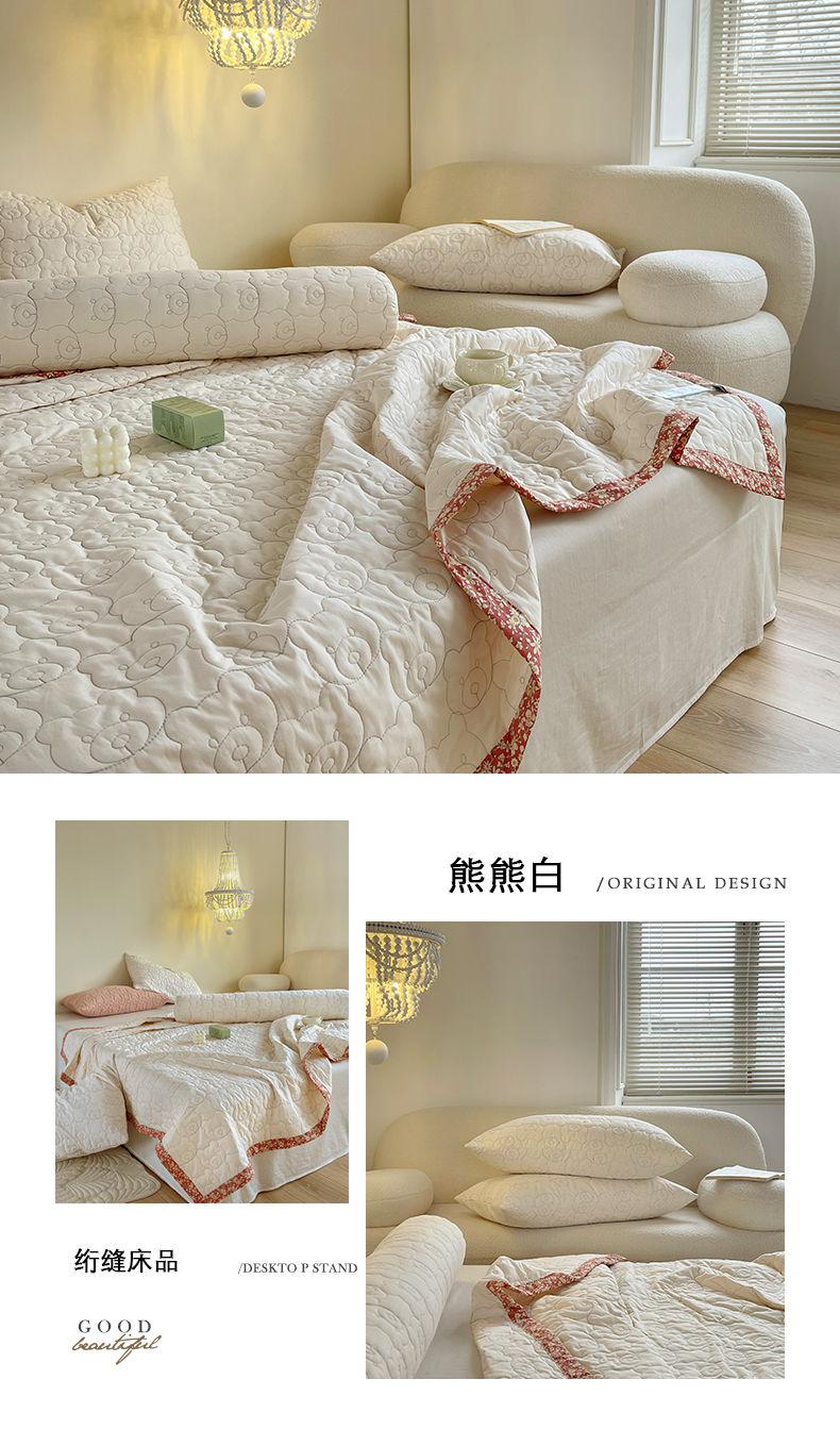 网客家纺 2024新款全棉绗缝夏被床盖三件套 熊熊白