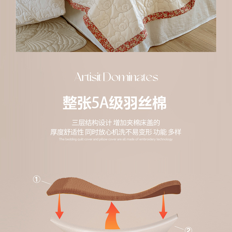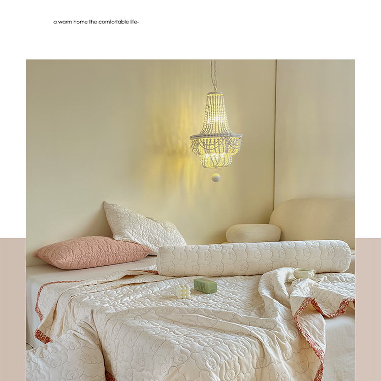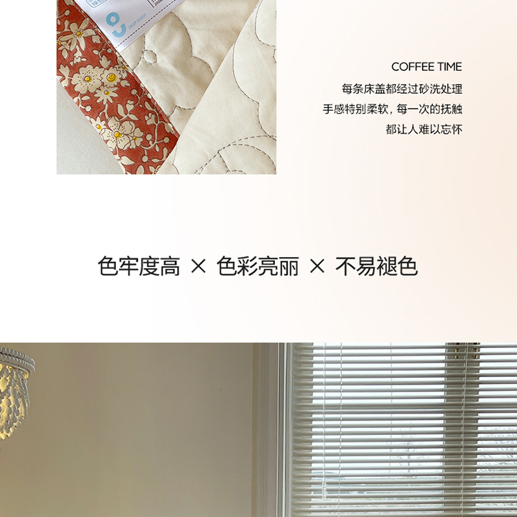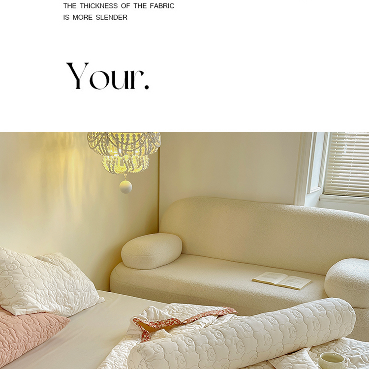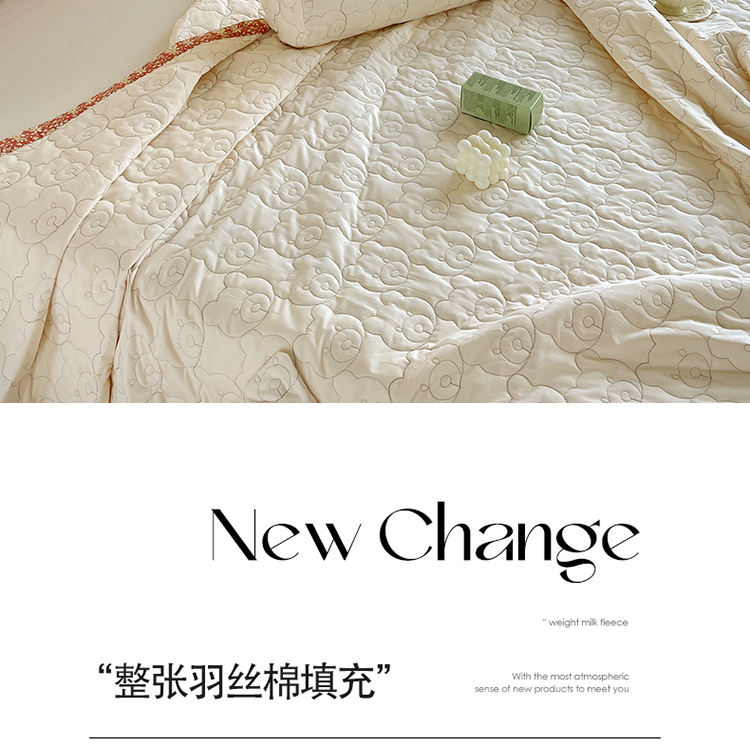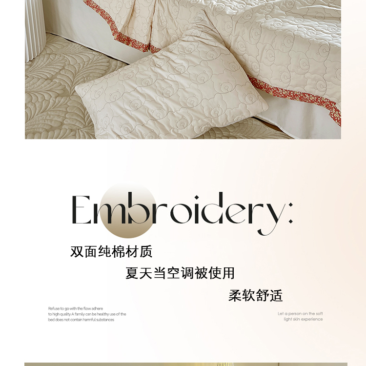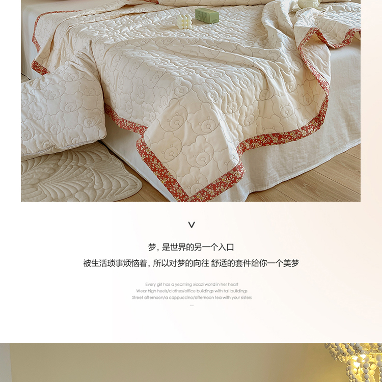 网客家纺 2024新款全棉绗缝夏被床盖三件套 熊熊白