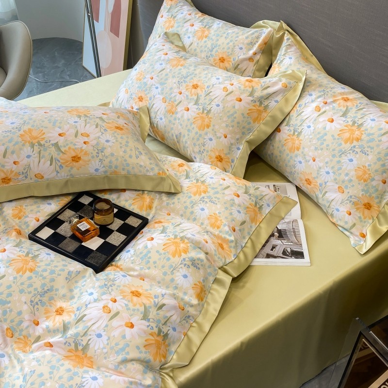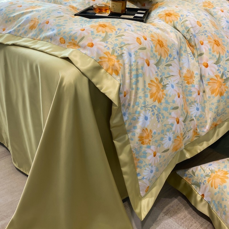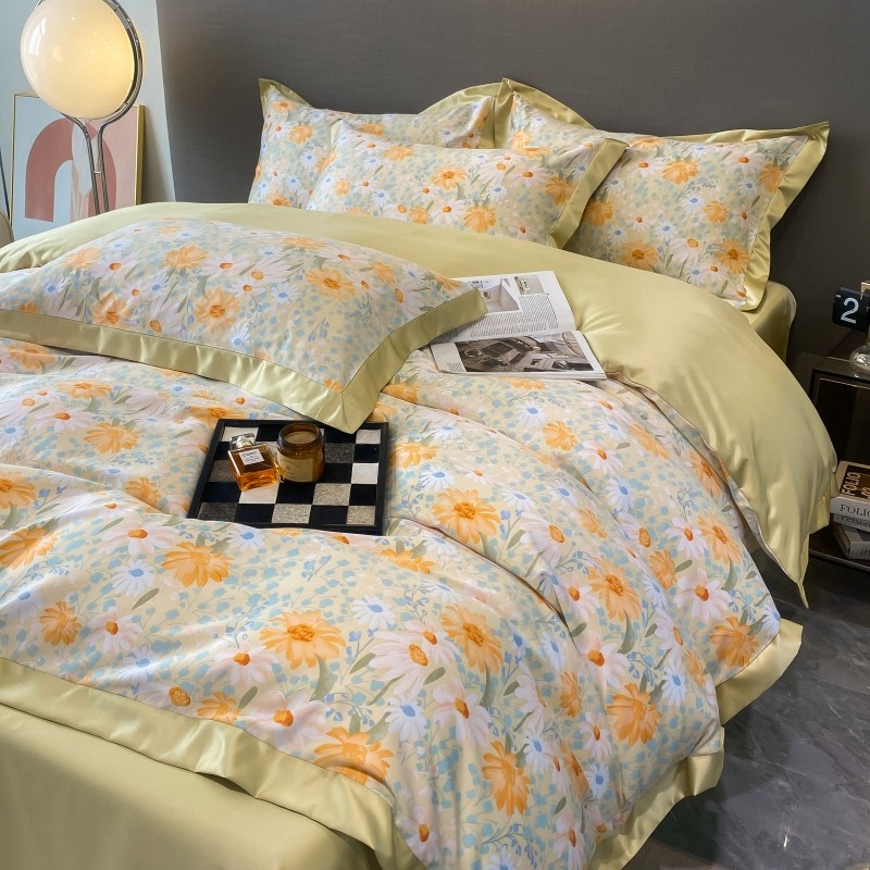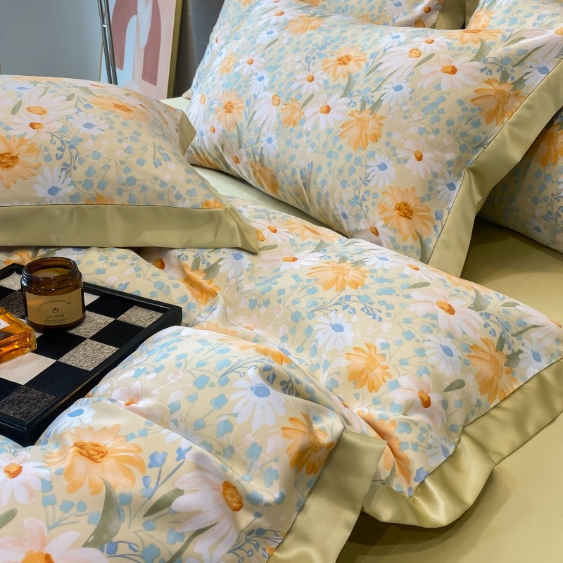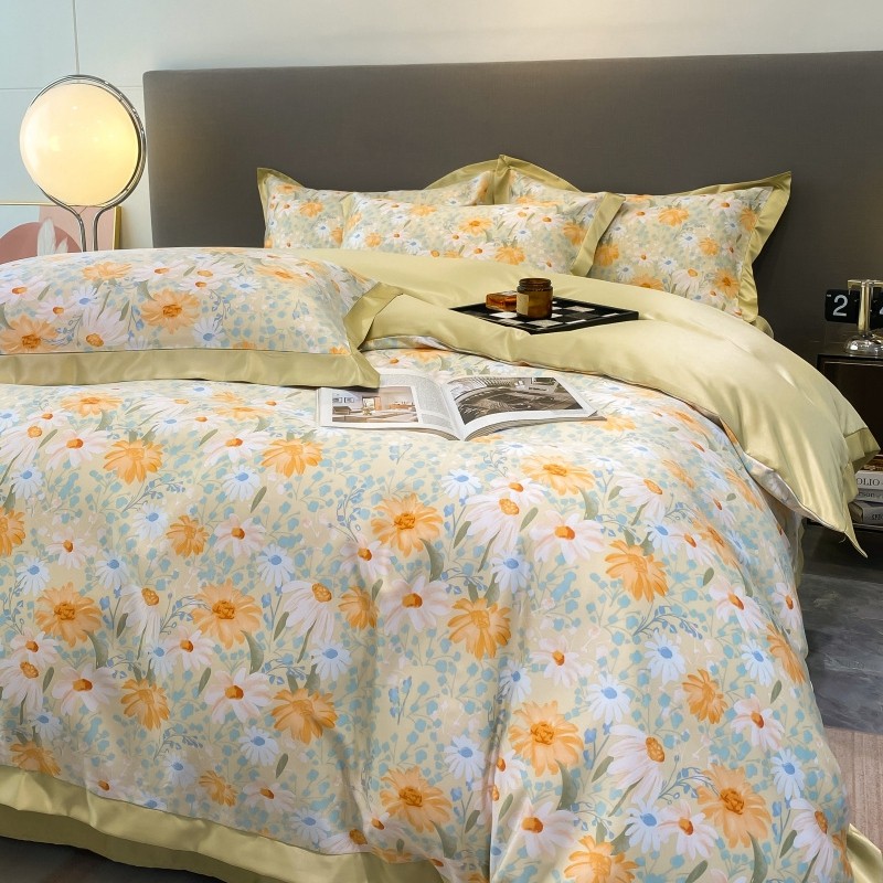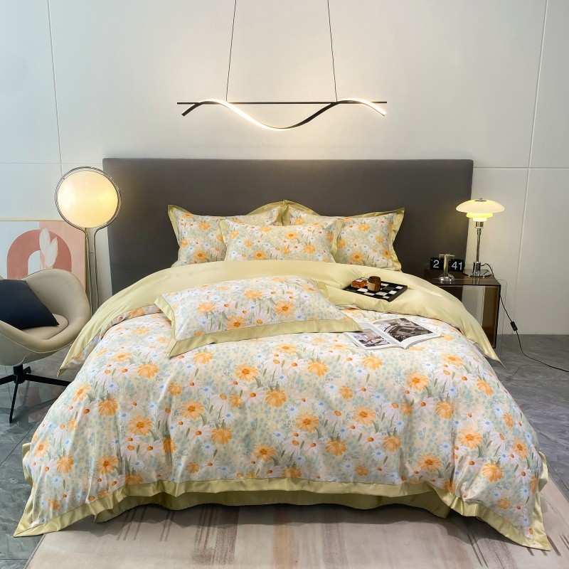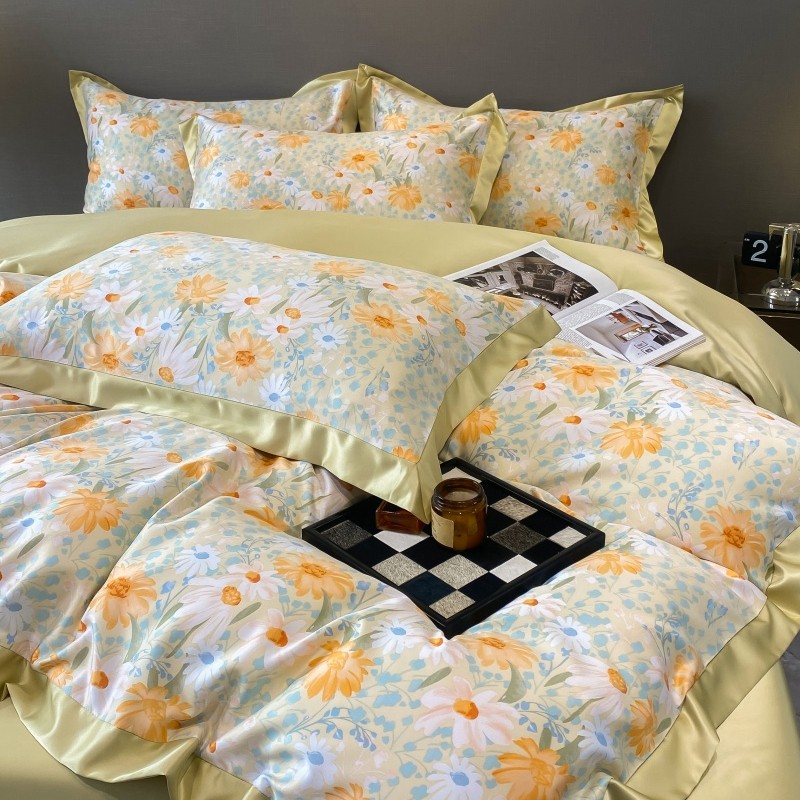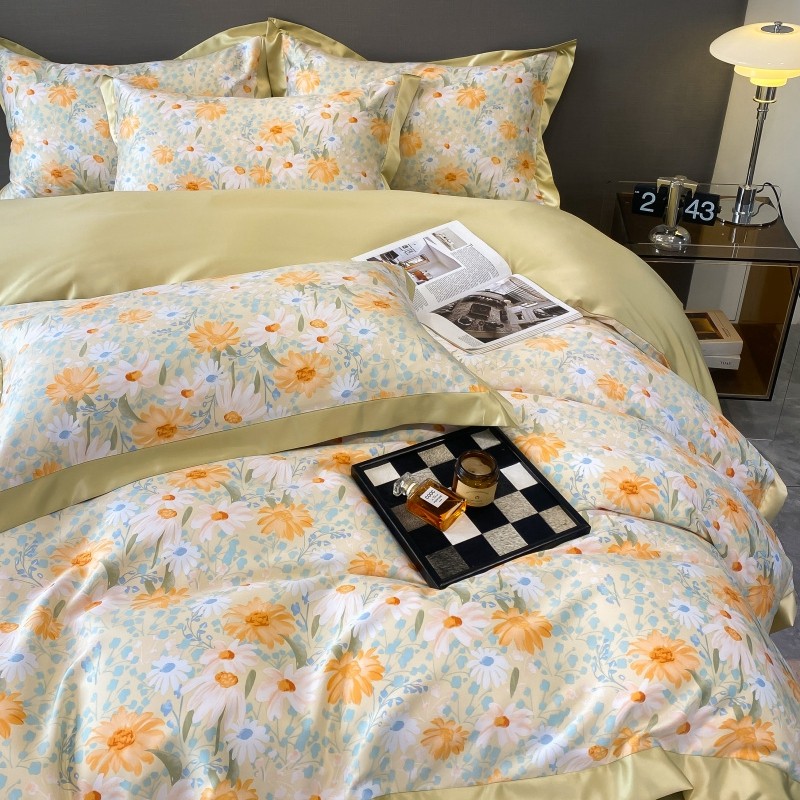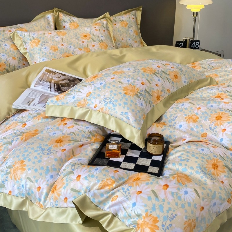 棉生活 2023新款3M贡缎工艺天丝四件套 松菊桔