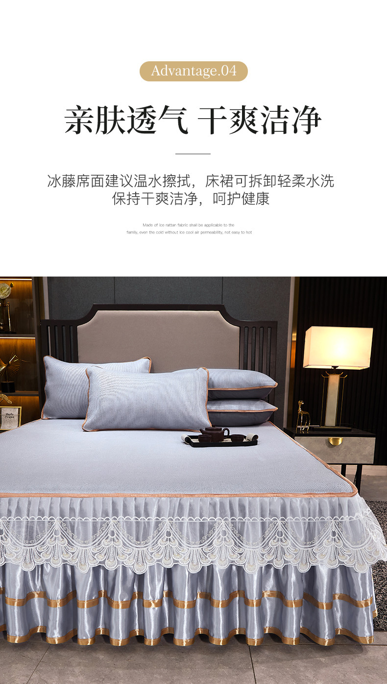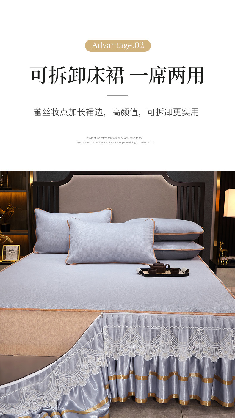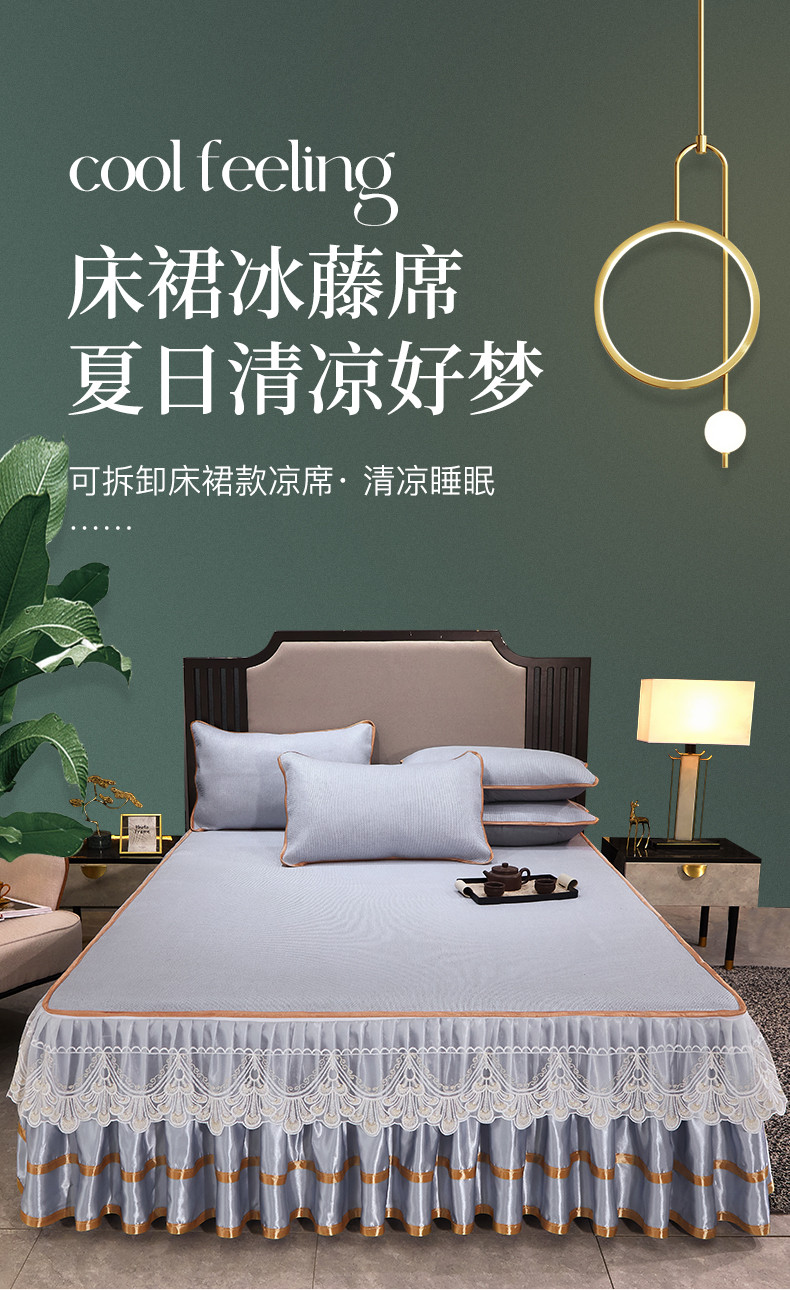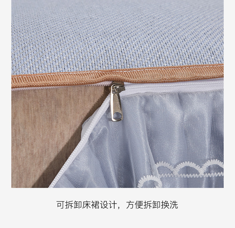 罗艺轩 2024新款可拆卸床裙款冰藤席 富贵旺族-蓝