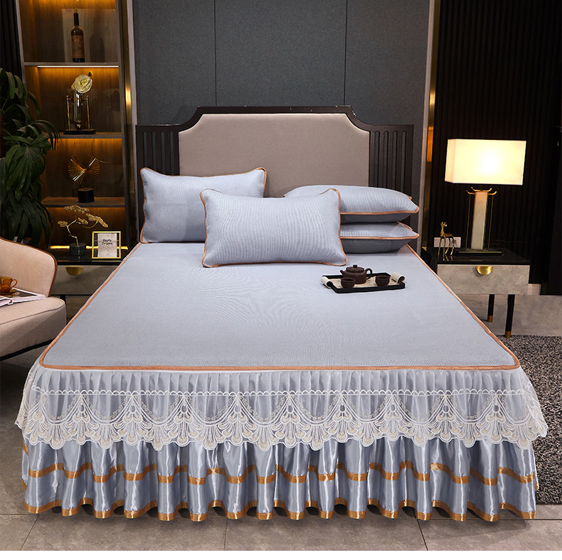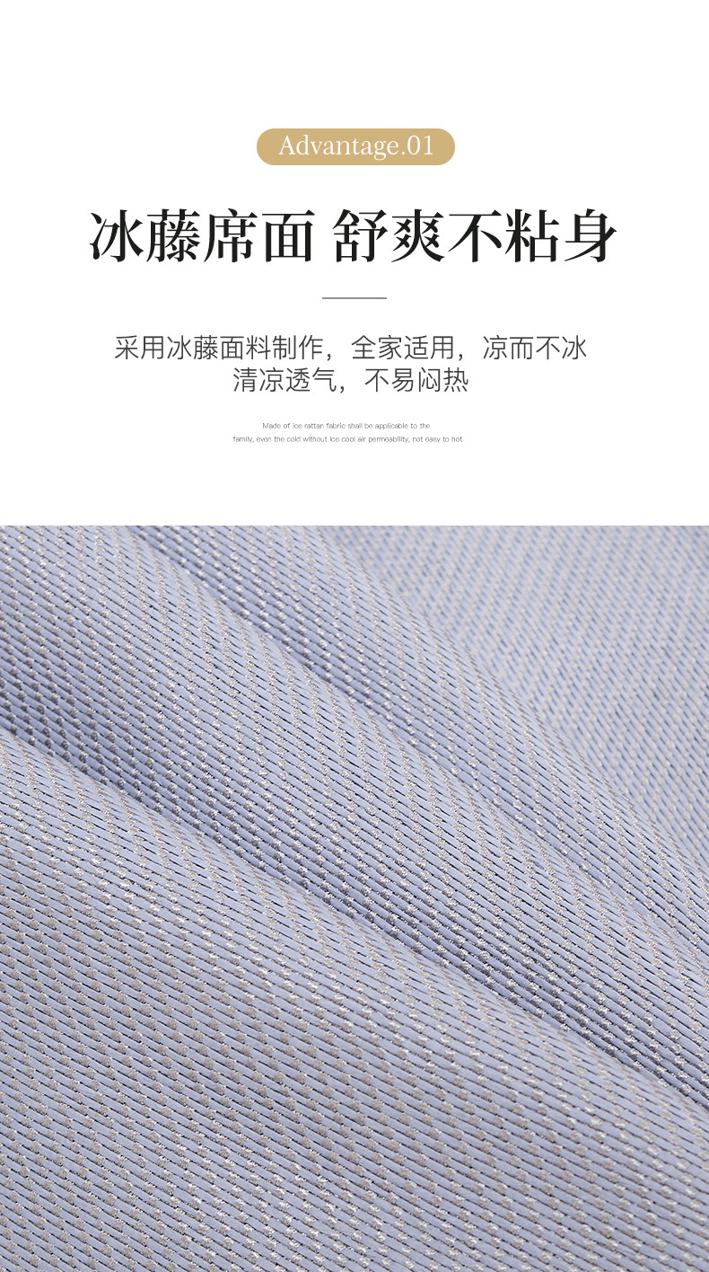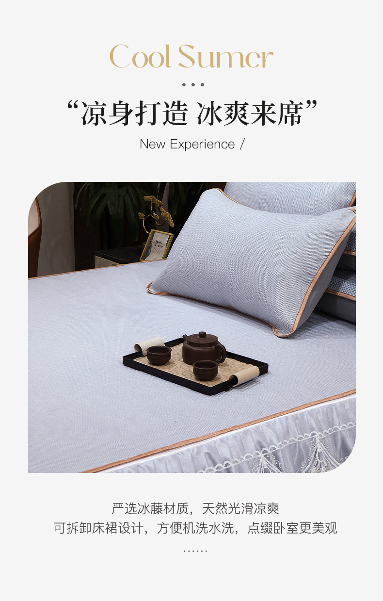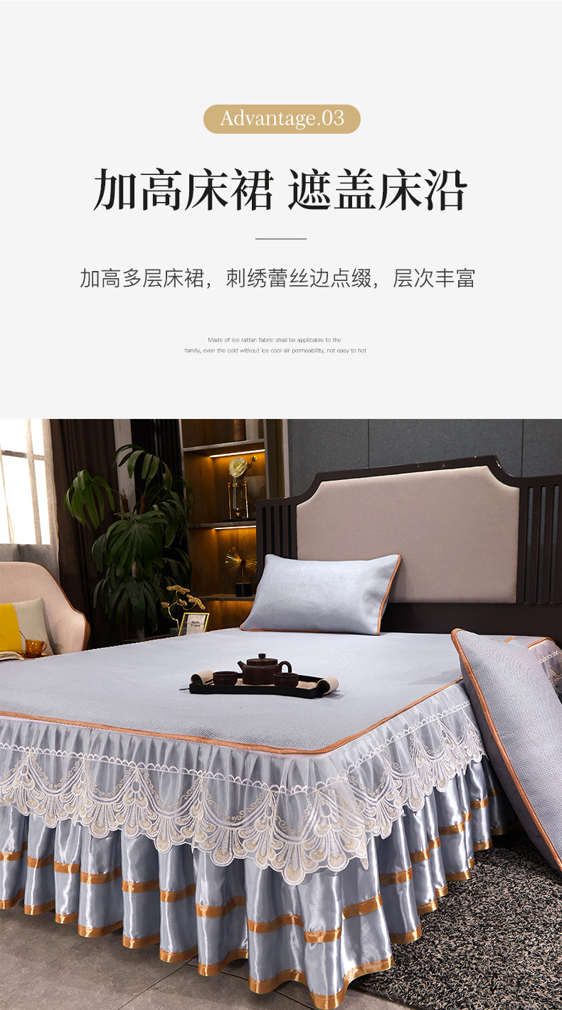 罗艺轩 2024新款可拆卸床裙款冰藤席 富贵旺族-蓝