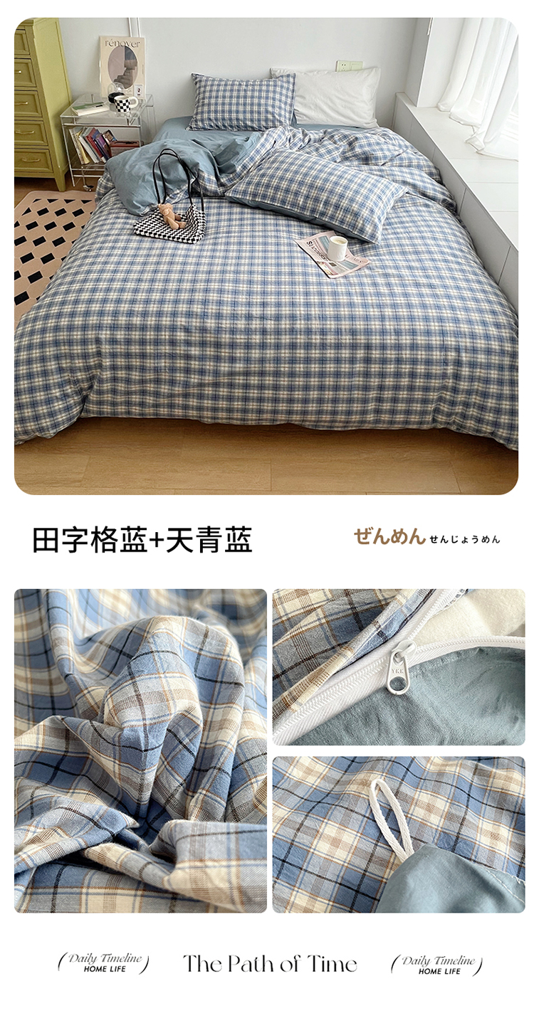 商品名称:北欧良品 2023新款AB版水洗棉四件套 田字格蓝+天青蓝