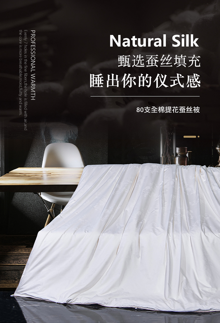 商品名称:纯蚕丝被 花溪80支提花全棉纱布双内胆 桐乡双宫桑蚕丝被长丝 天木兰