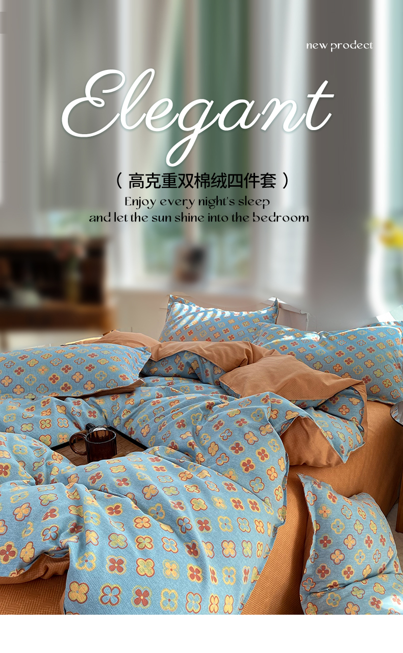 妖妖家纺 2023铂金高克重植物羊绒130克斜纹印花四件套 芙拉