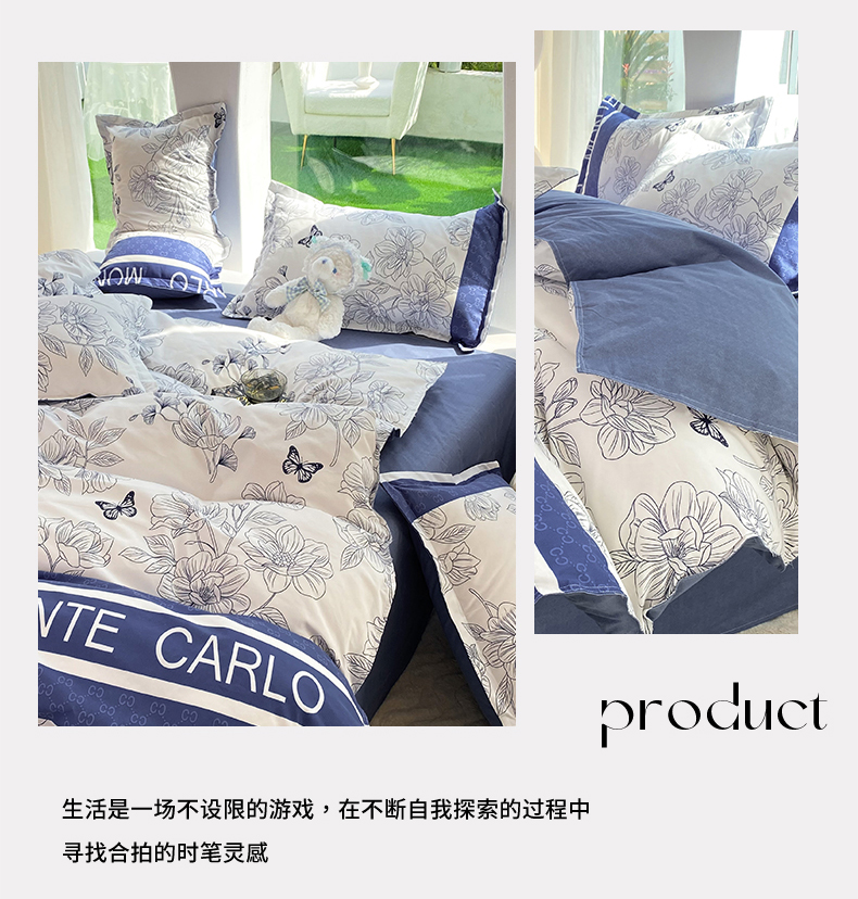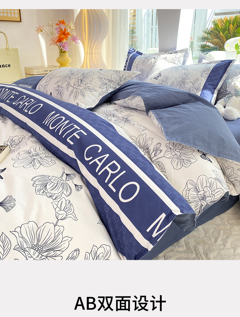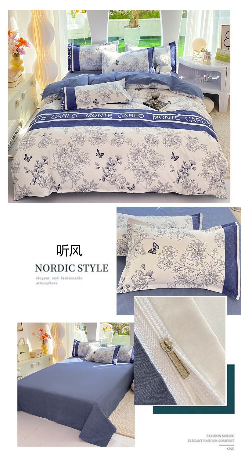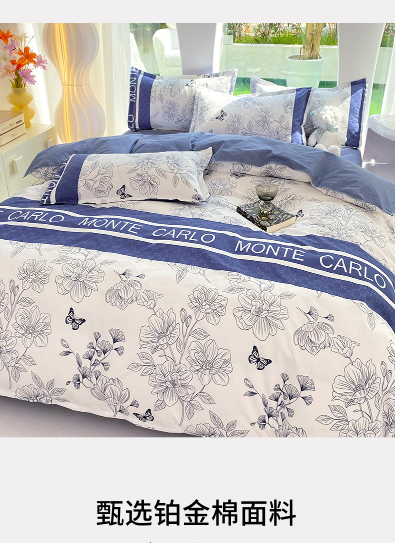 商品名称:妖妖家纺 2023铂金高克重植物羊绒130克斜纹印花四件套 听风