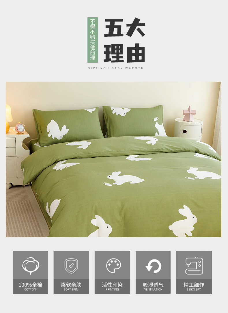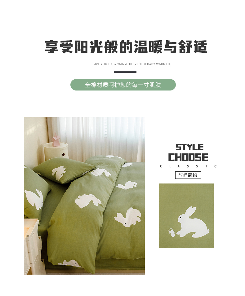 芃成家纺 2023新款全棉13070四件套 可爱兔