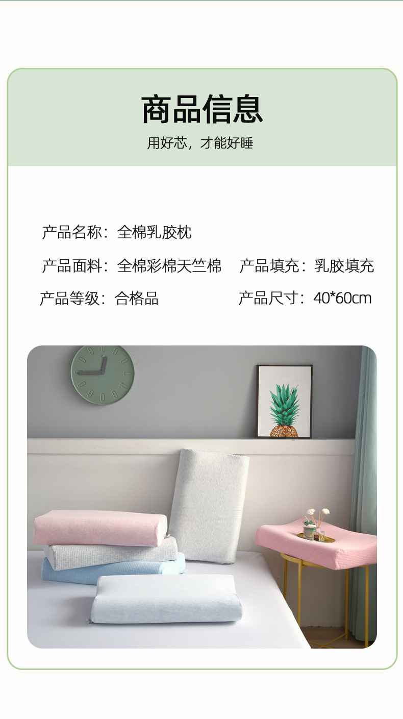 当前位置: 91家纺网 > 商品网购 > 枕头/枕芯/保健枕/颈椎枕 > 乳胶枕 > 佳梦达 2023新款全棉彩棉天竺棉记忆乳胶枕头枕芯-乳胶枕 平滑颗粒款40*60cm/只粉色(含内外套