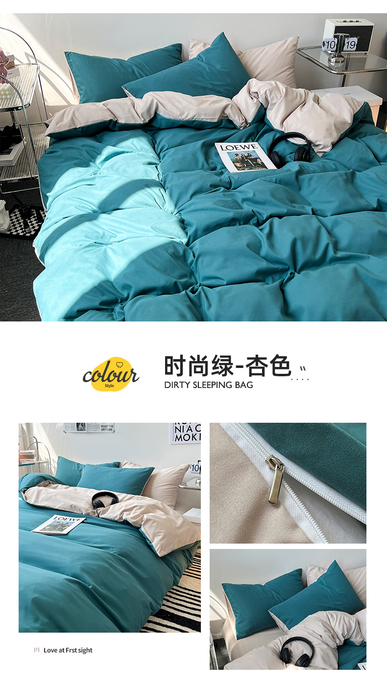 当前位置: 91家纺网 > 商品网购 > 床品套件 > 四件套 > 磨毛活性四件套 > 芷凡家纺 2023新款水洗磨毛双拼四件套 时尚绿-杏色