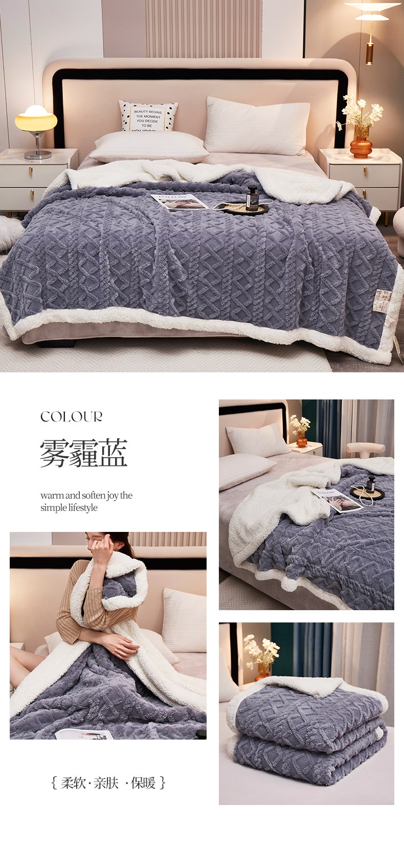商品名称:肖恩 2025秋冬新款塔芙绒羊羔绒毛毯 雾霾蓝