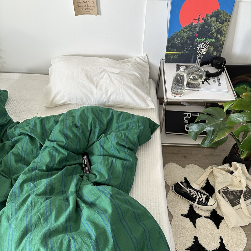 (总)恋恋三季 2025新款ins博主简约条纹极简风纯棉单被套,色织水洗-黑白世界,色织水洗-空白格