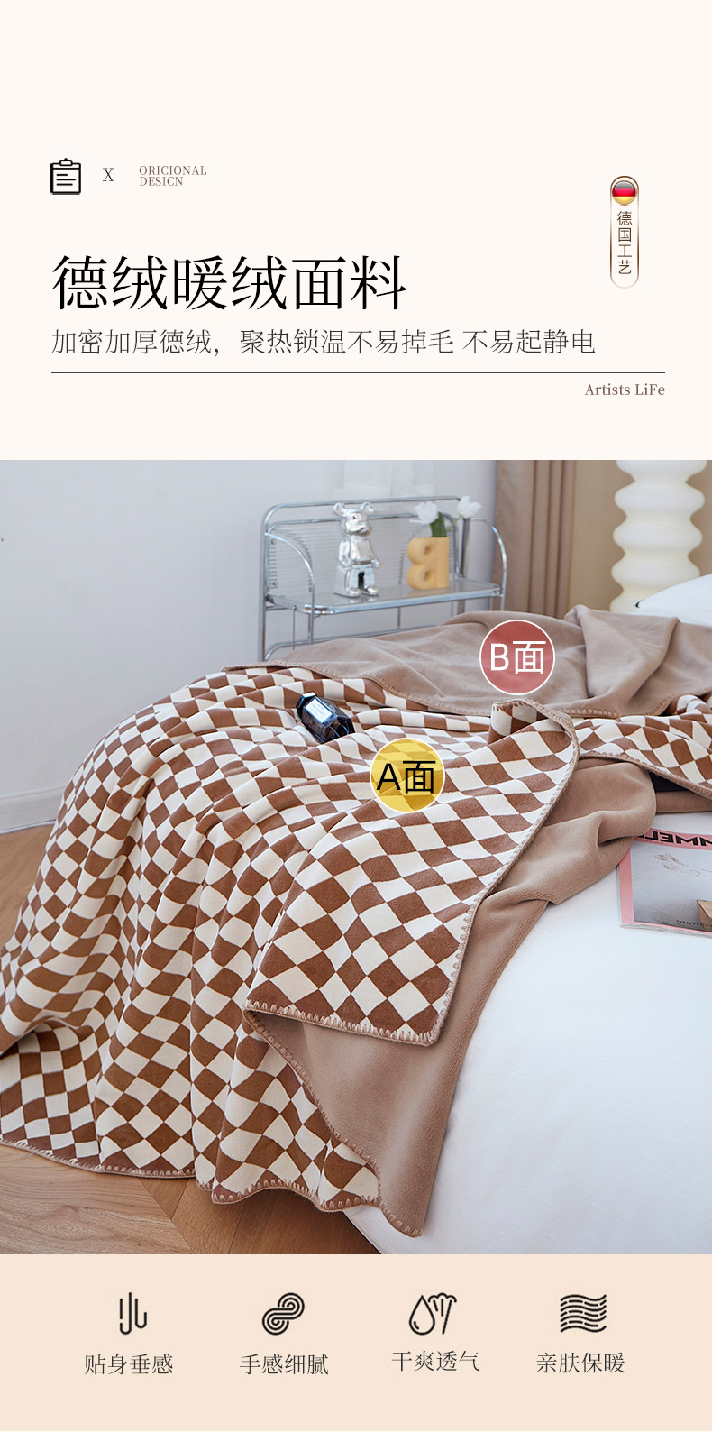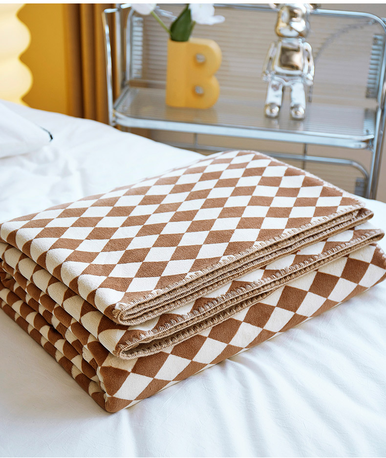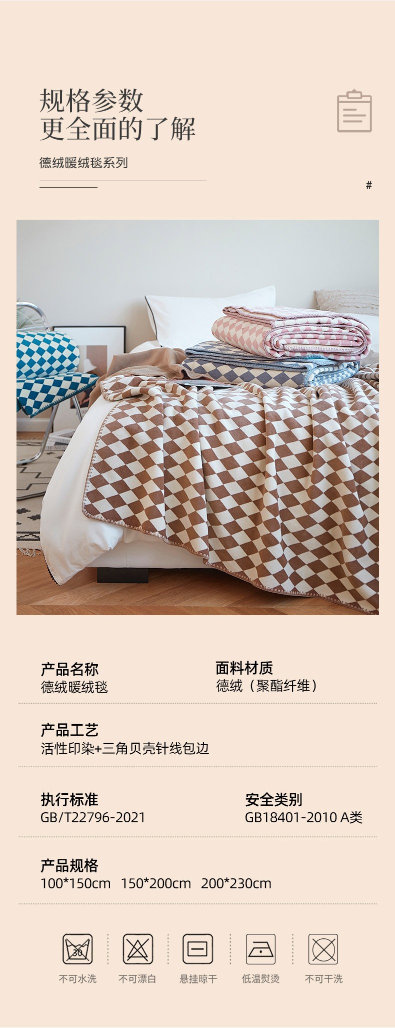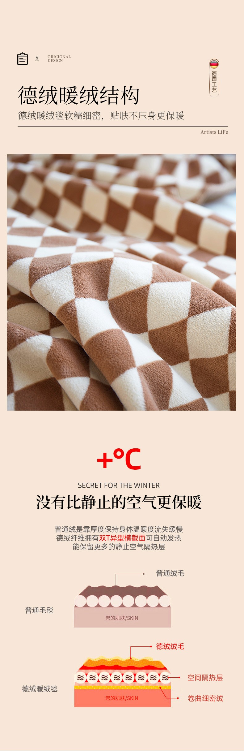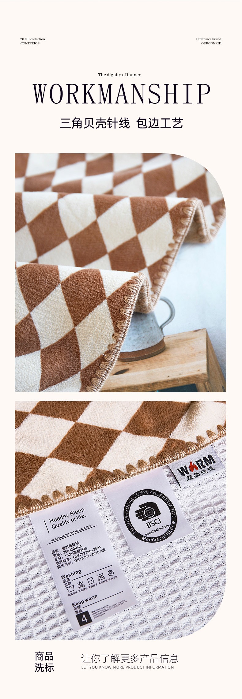 商品名称:肖恩 2025新款A类菱形格德绒暖绒毯 菱形格-咖啡