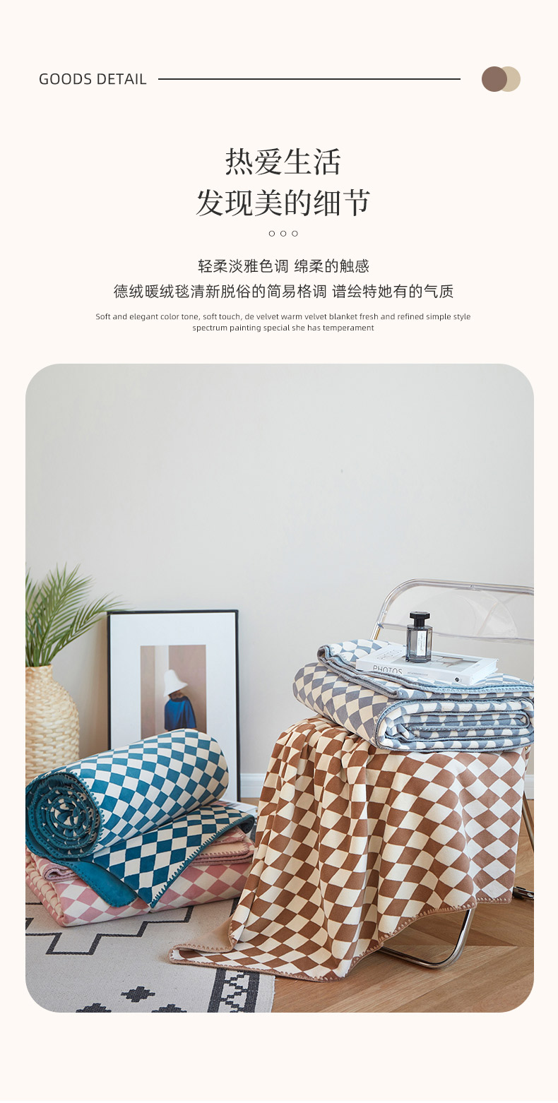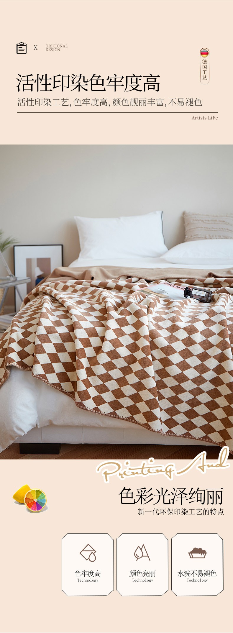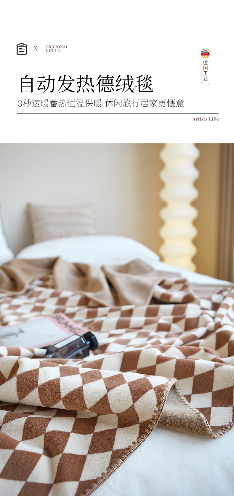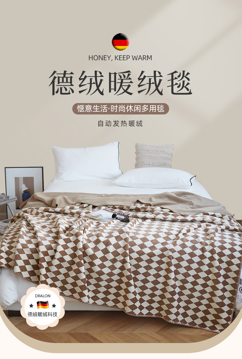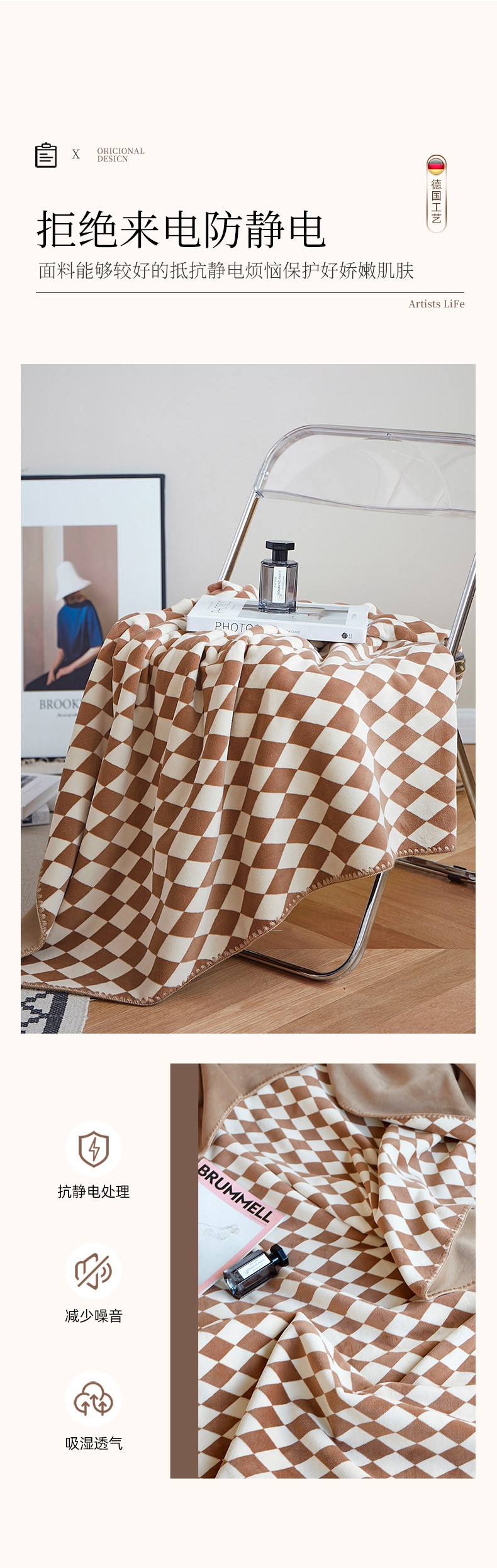商品名称:肖恩 2025新款A类菱形格德绒暖绒毯 菱形格-咖啡
