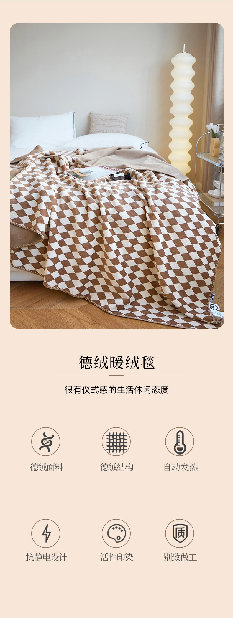 肖恩 2025新款A类菱形格德绒暖绒毯 菱形格-咖啡