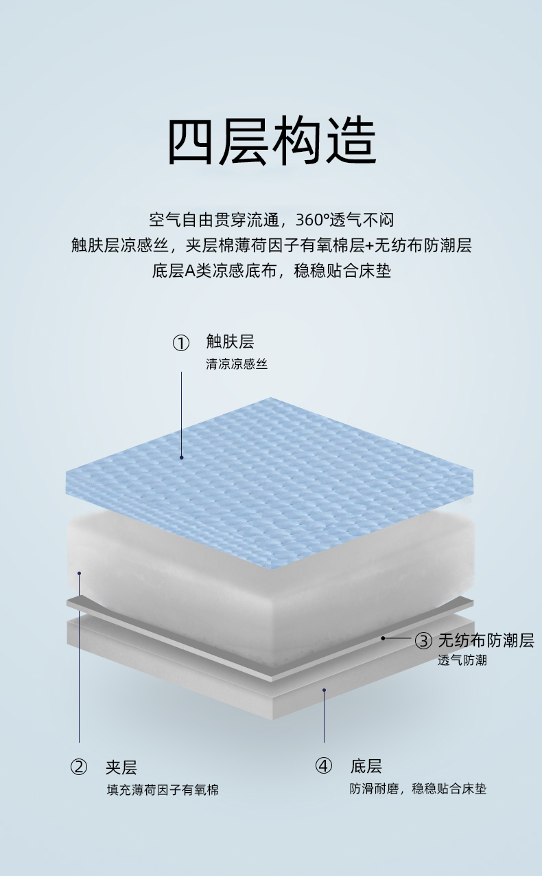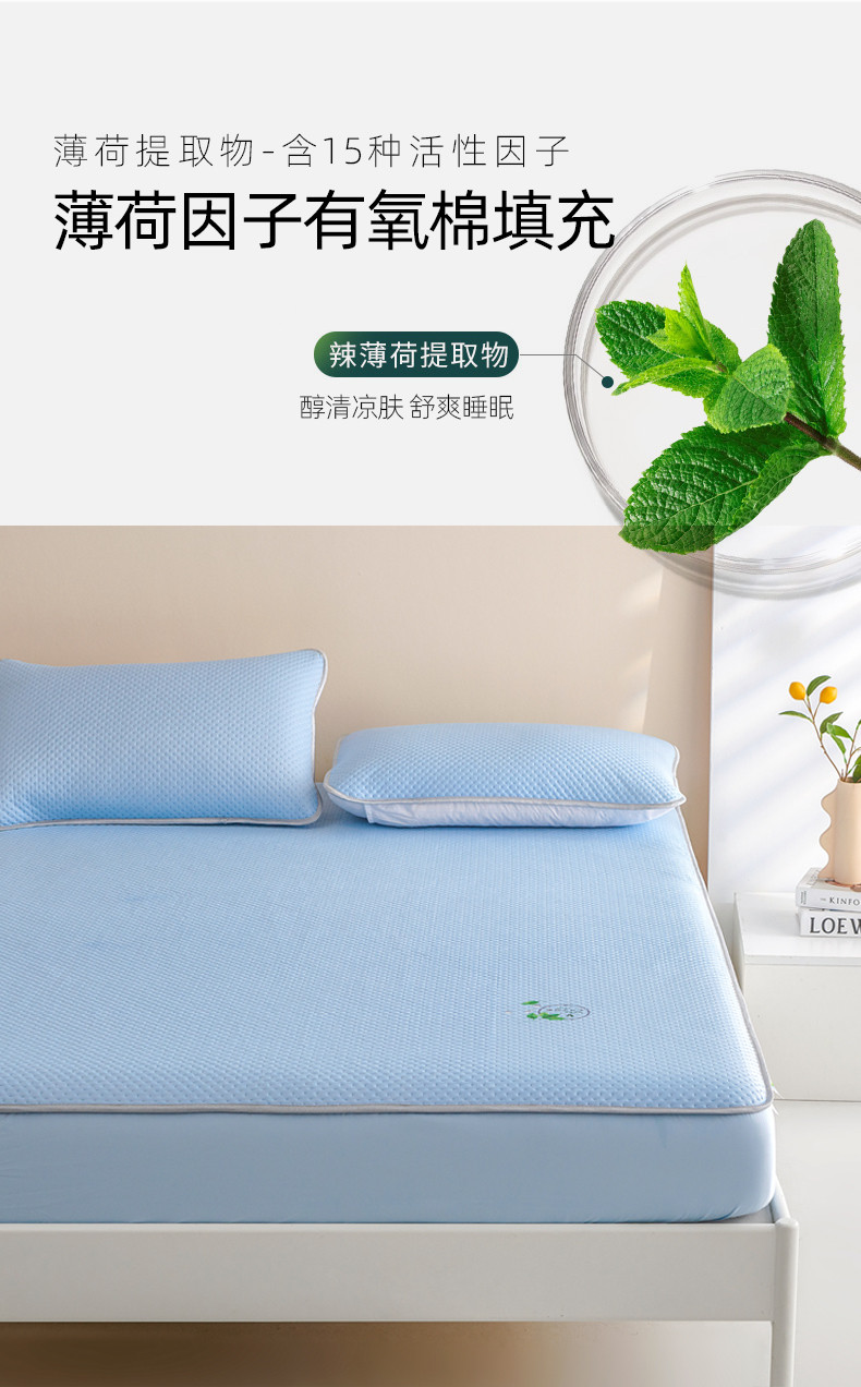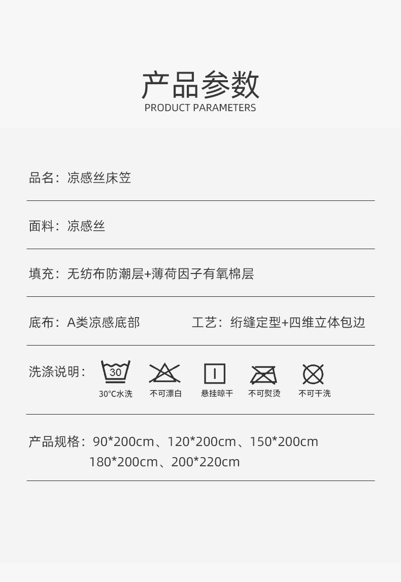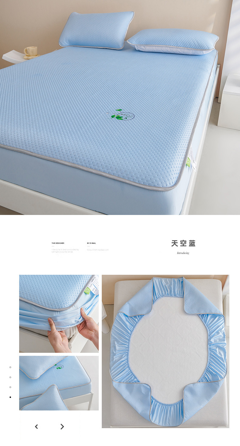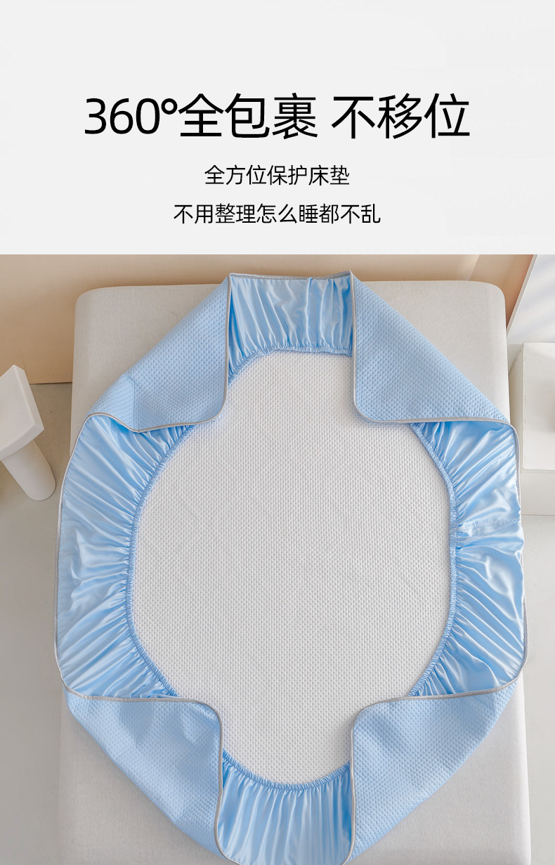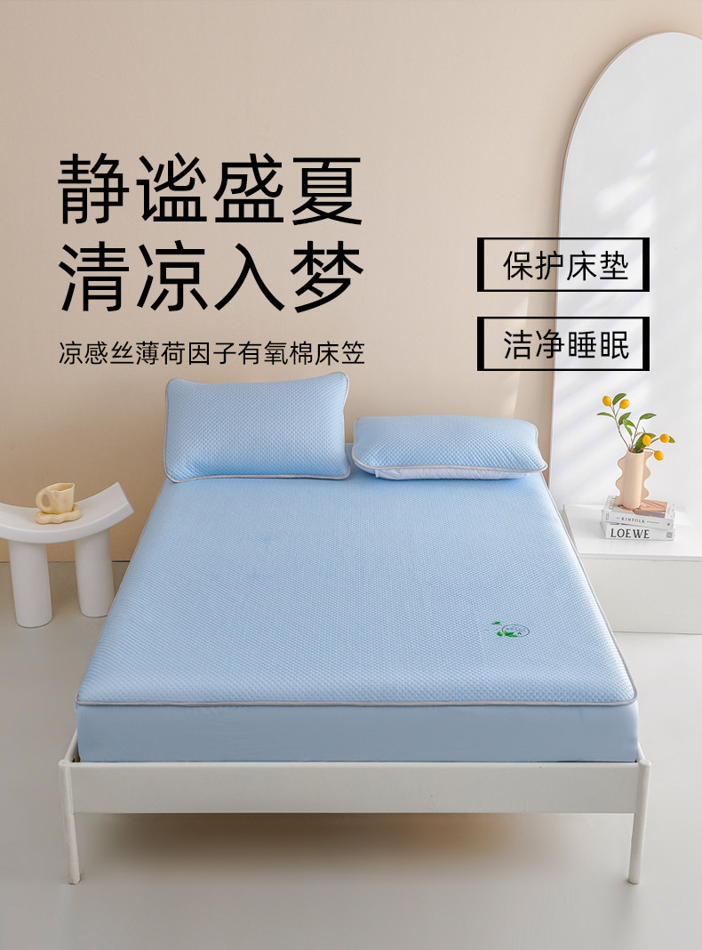 商品名称:席世家 2023新款薄荷冰丝凉感席A类凉感丝软席床笠席 天空蓝-床笠款