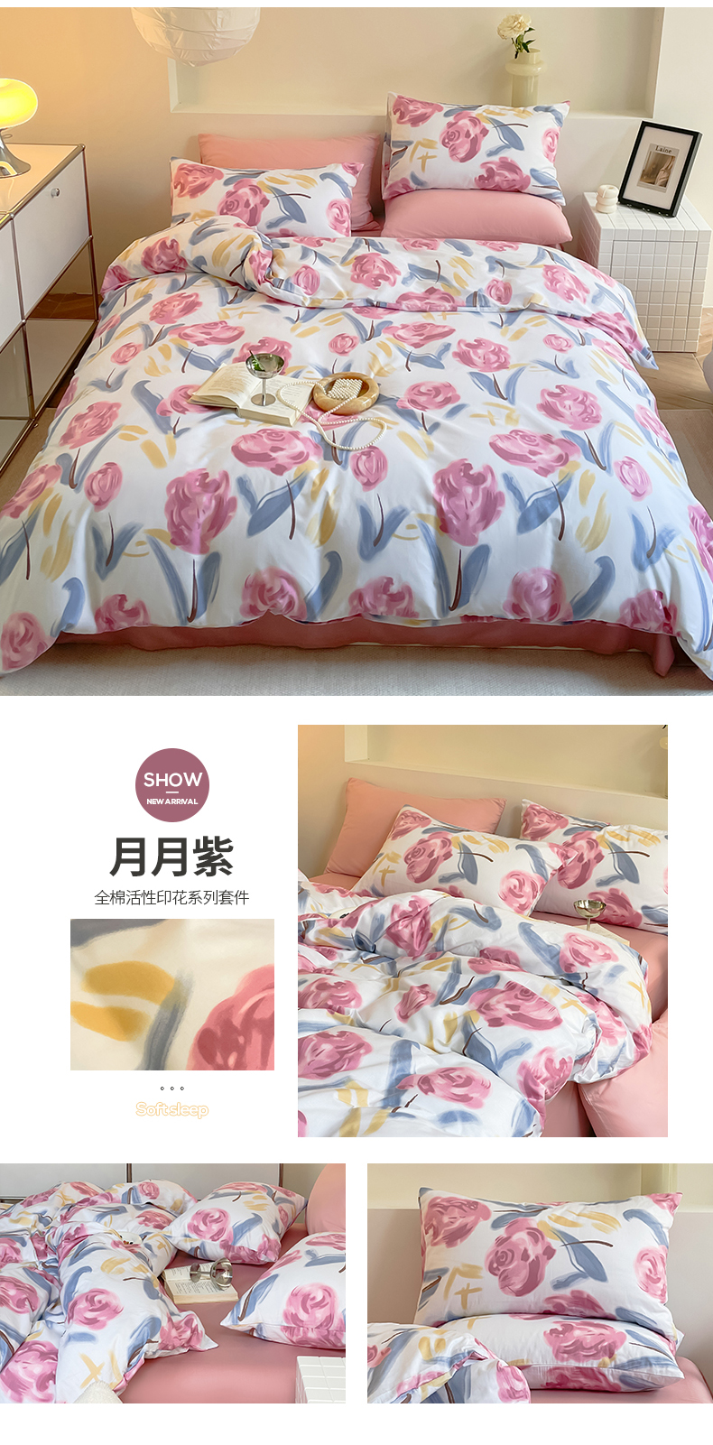 当前位置: 91家纺网 > 商品网购 > 床品套件 > 四件套 > 全棉普通四件套 > 窝米 2023夏季新品13370全棉四件花卉风系列 月月紫