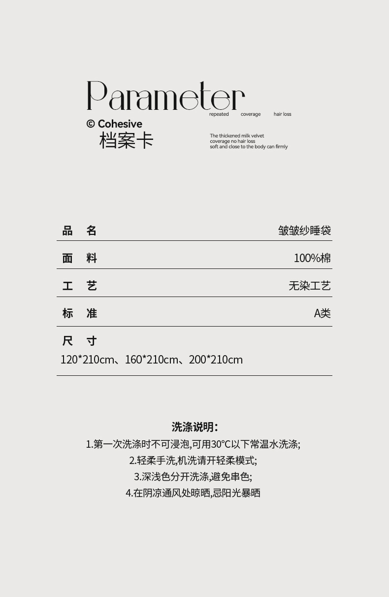 商品名称:(总)华超针织 2023新款A类原棉皱皱纱隔脏睡袋