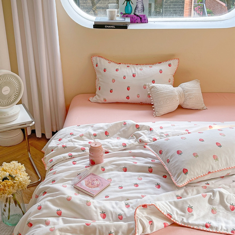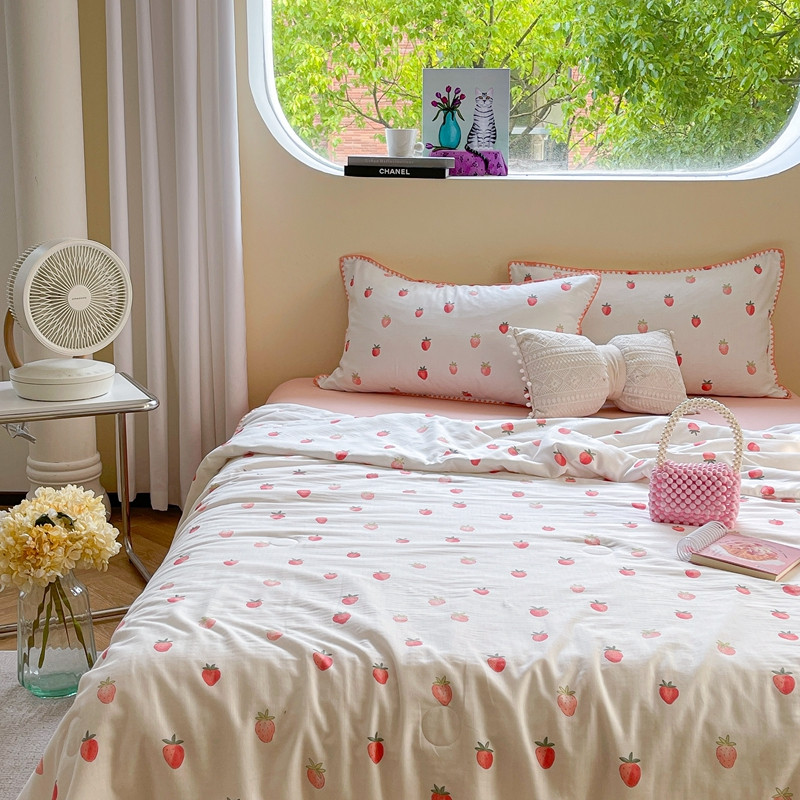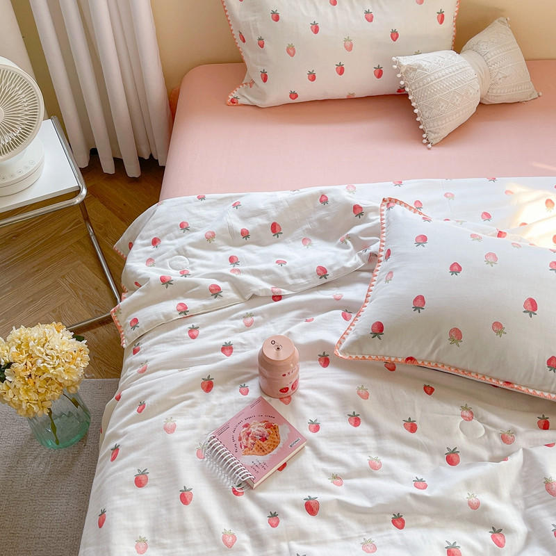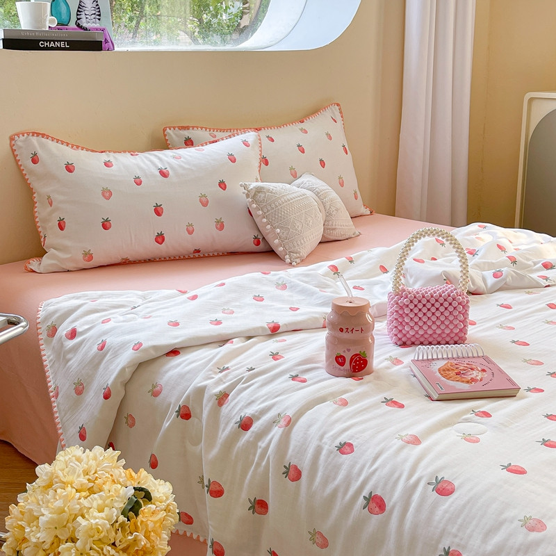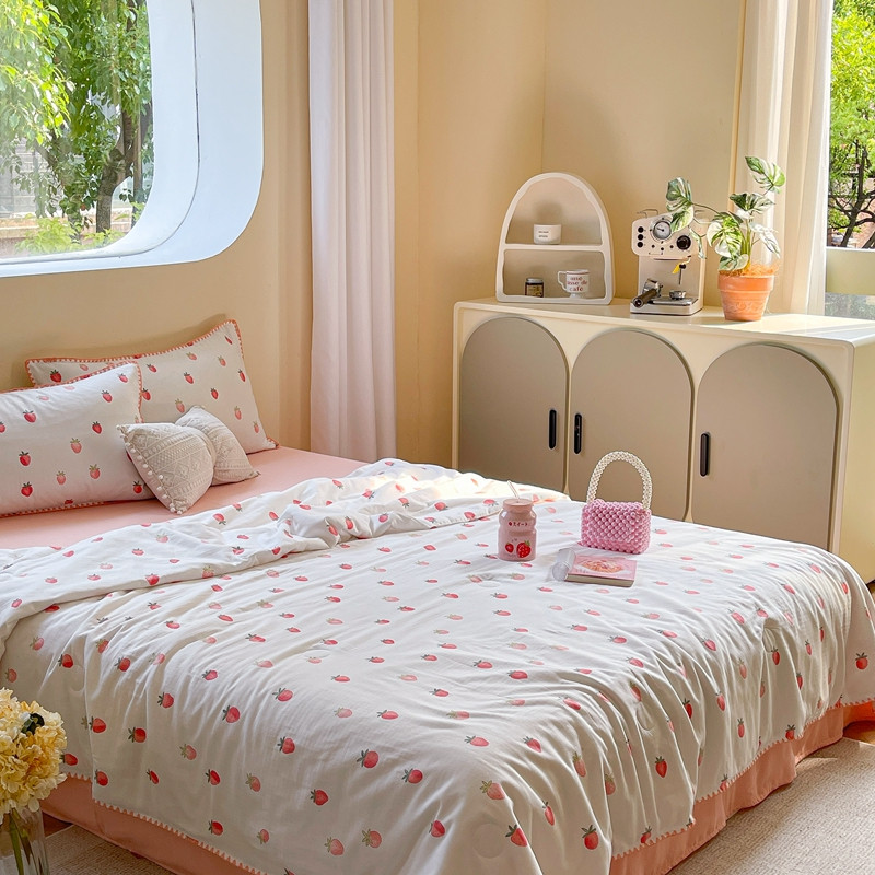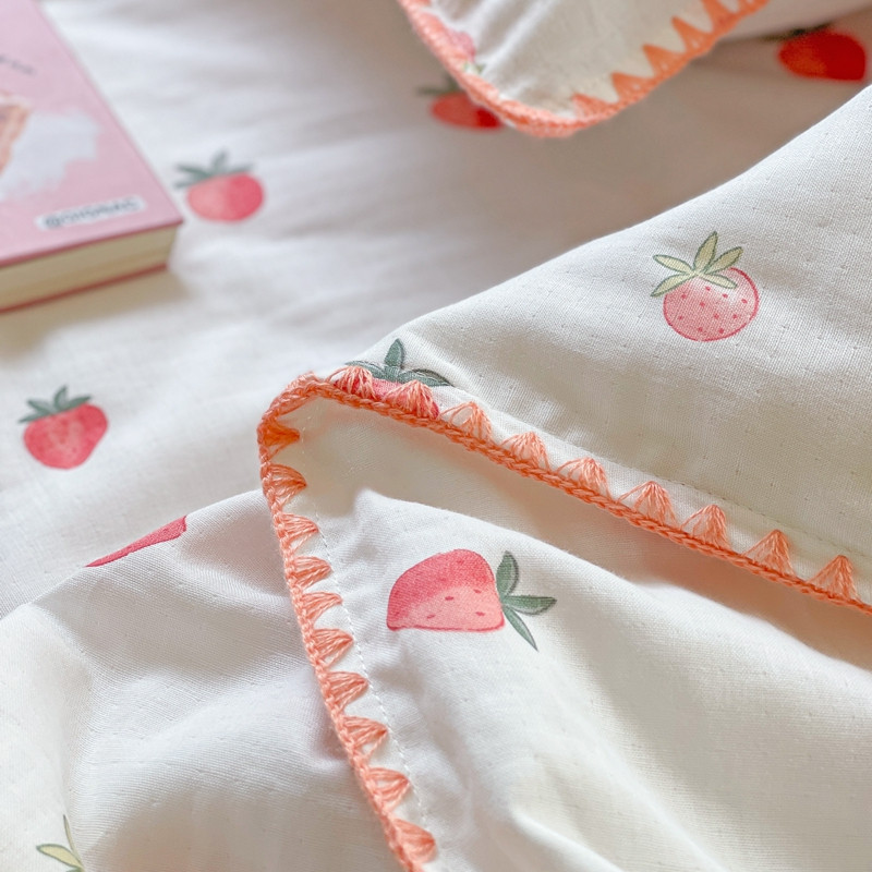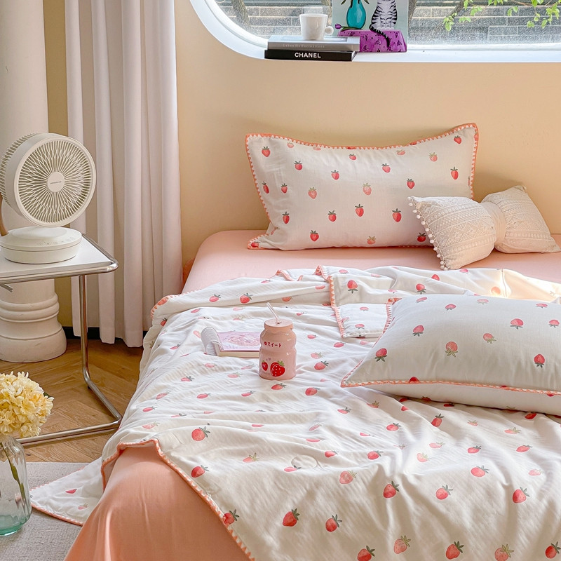 商品名称:柚子 2023新款全棉有氧双层纱夏被四件套 草莓园