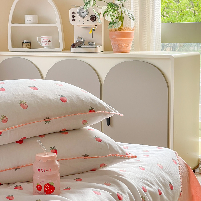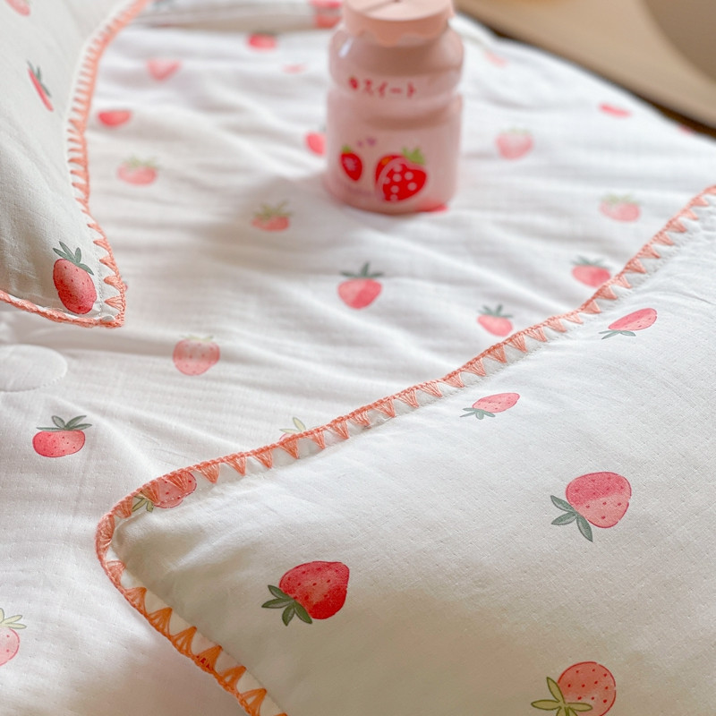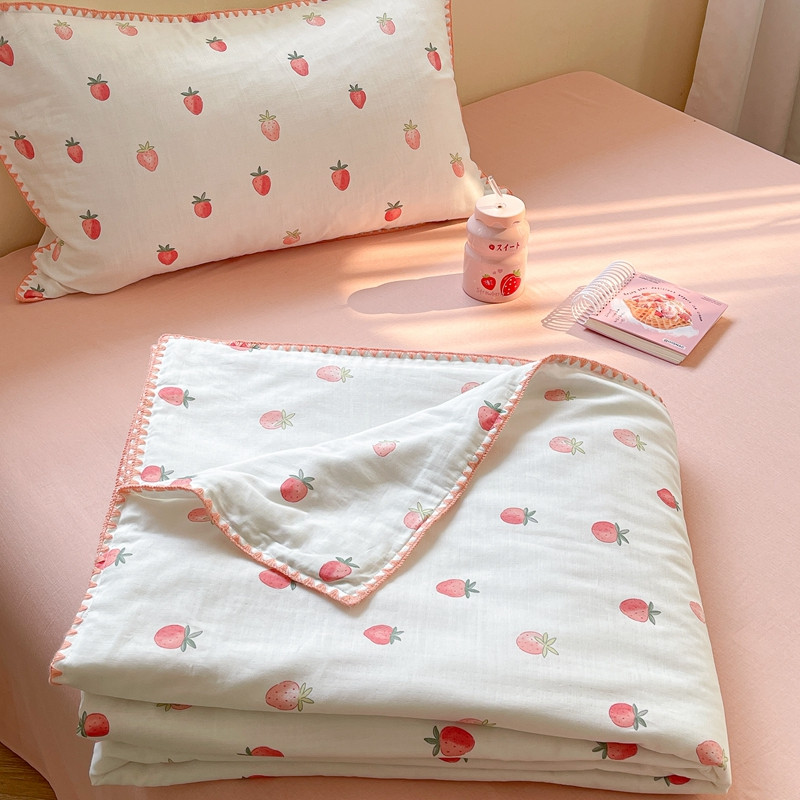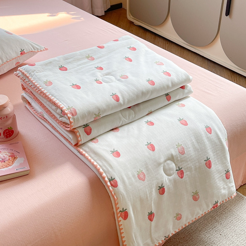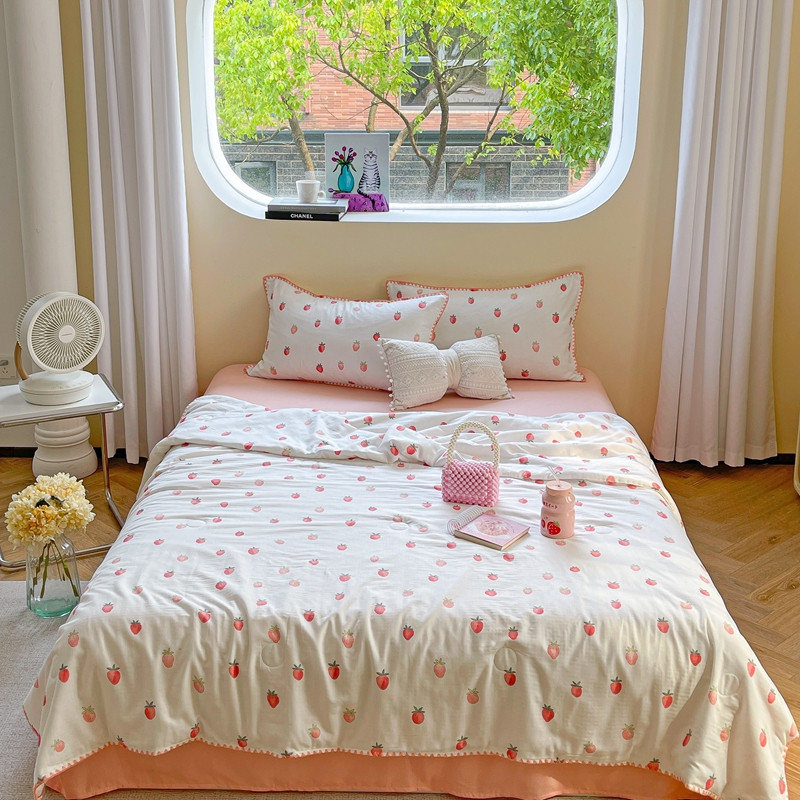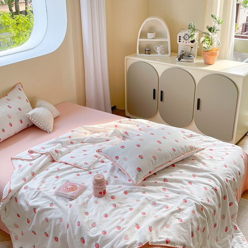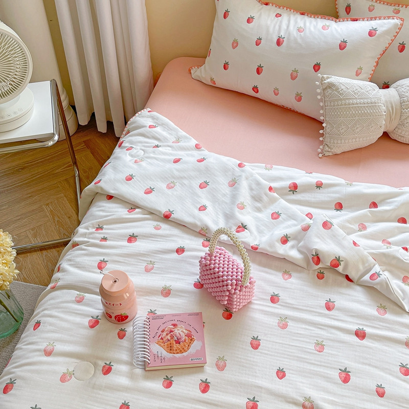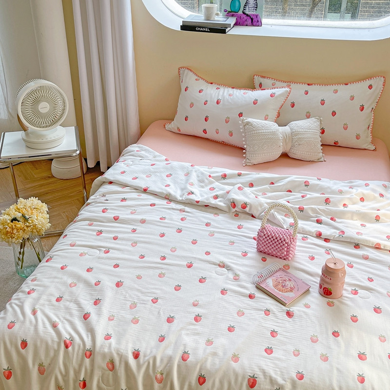 商品名称:柚子 2023新款全棉有氧双层纱夏被四件套 草莓园