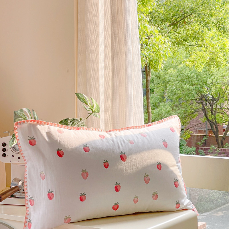 柚子 2023新款全棉有氧双层纱夏被四件套 草莓园