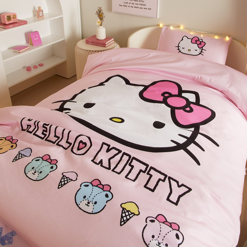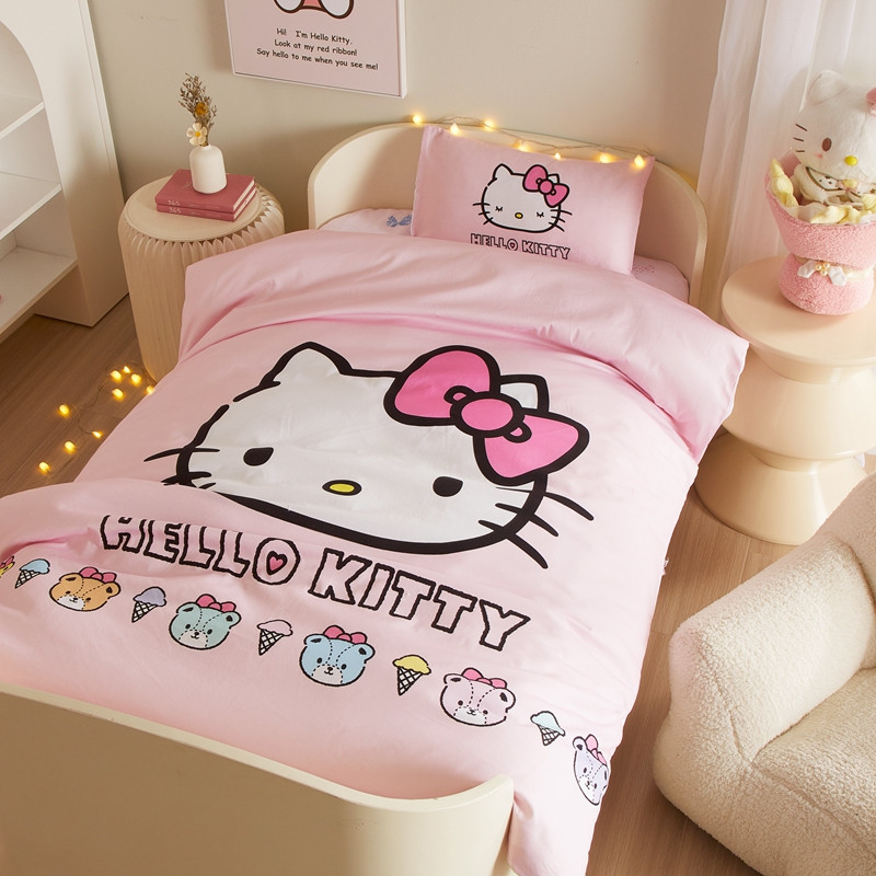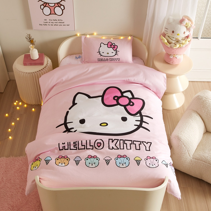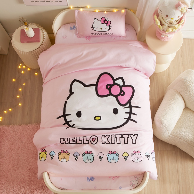 商品名称:蘭菲 2023新款幼儿园全棉印染三丽鸥全棉大版卡通三件套 粉系