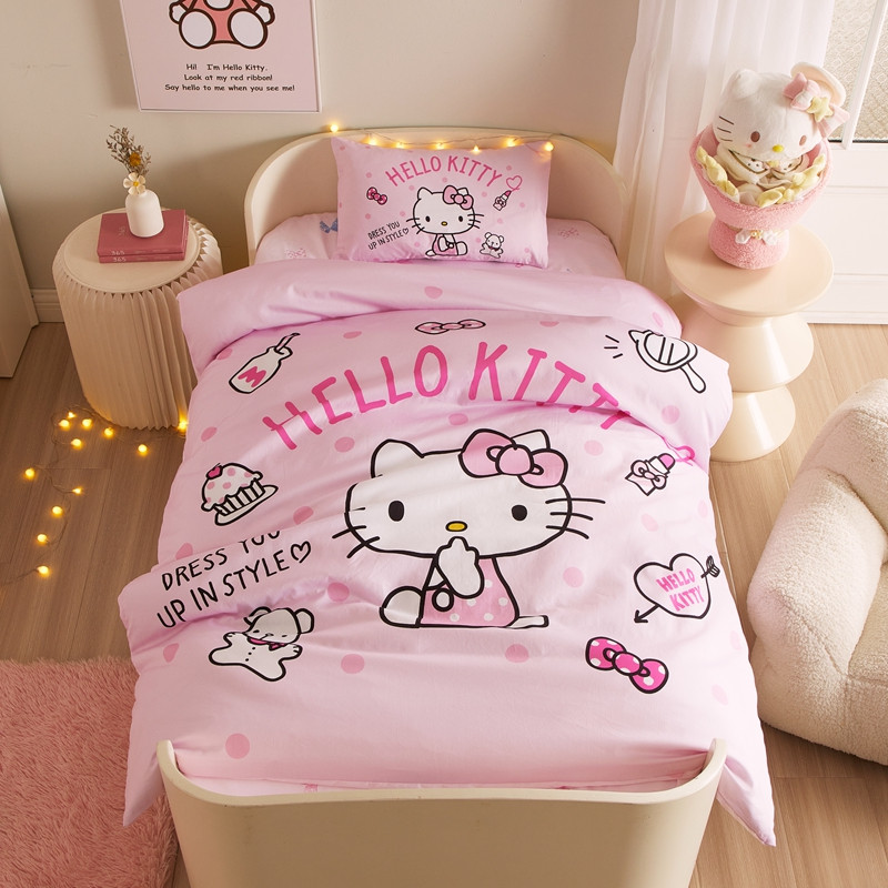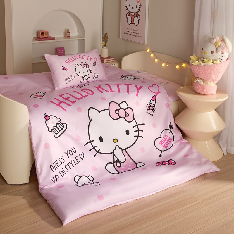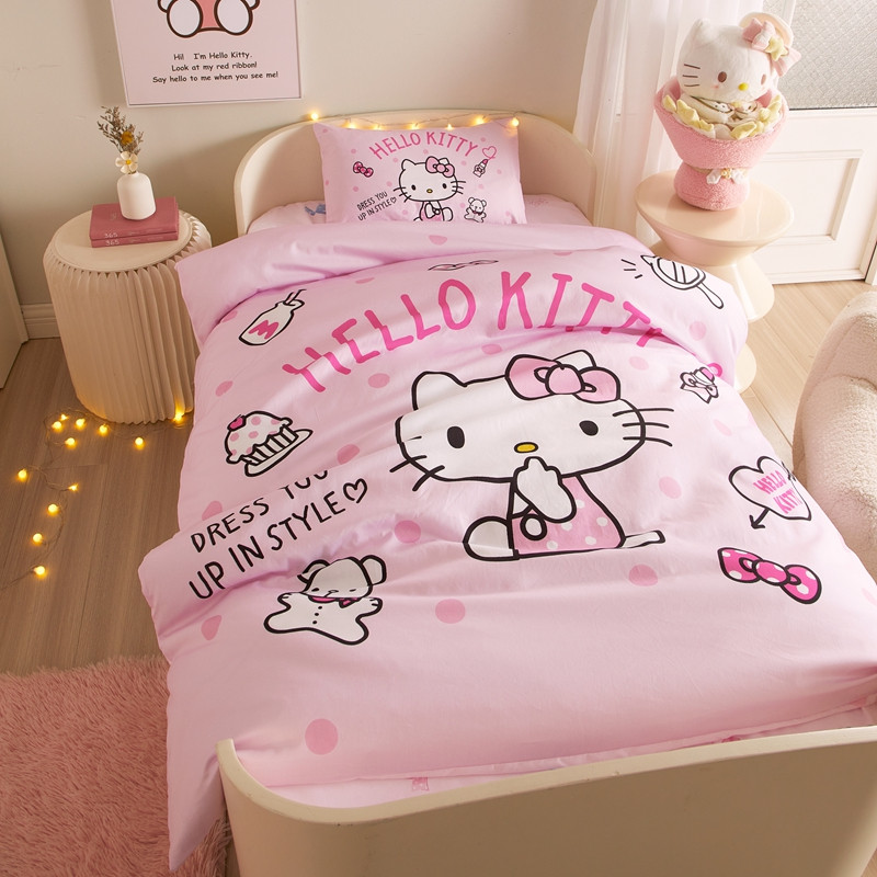 商品名称:蘭菲 2023新款幼儿园全棉印染三丽鸥全棉大版卡通三件套 甜心kt